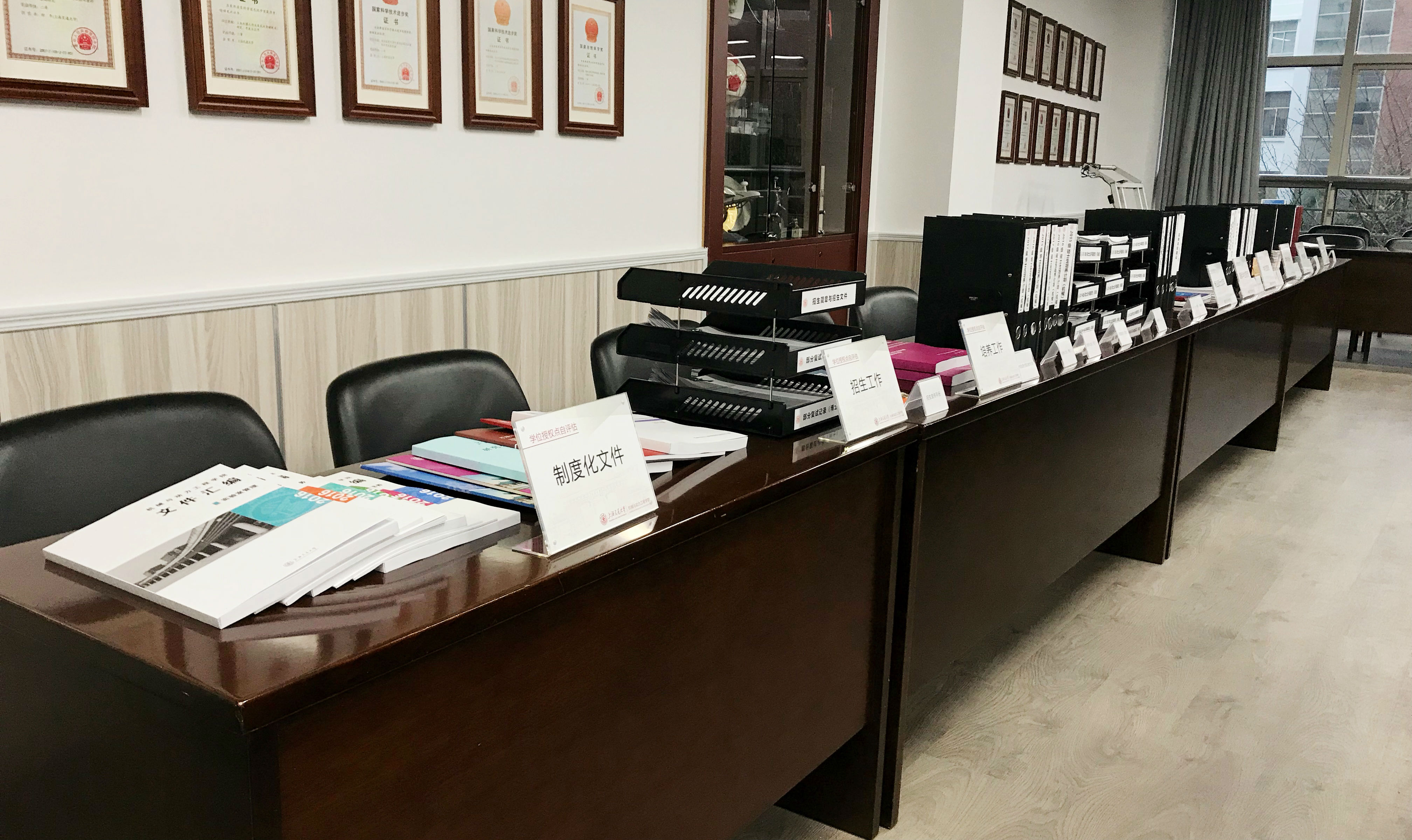 學(xué)位授權(quán)點合格評估分為學(xué)校自我評估和教育行政部門隨機抽評兩個階段。本次自我評估為診斷式評估,是對各學(xué)位授權(quán)點的全面檢查,著眼于發(fā)現(xiàn)問題,解決問題,持續(xù)提升研究生教育質(zhì)量。根據(jù)教育部《關(guān)于開展學(xué)位授權(quán)點合格評估工作的通知》和《上海交通大學(xué)學(xué)科授權(quán)點合格評估工作方案》的要求,我院自2017年3月啟動了全日制學(xué)位授權(quán)點合格自我評估工作。首先,以一級學(xué)科為單位成立了三個自評估小組,對一級學(xué)科下的8個學(xué)位點分別制定了自評估的工作計劃。按照學(xué)位授權(quán)點抽評要素,從目標(biāo)與標(biāo)準(zhǔn)、基本條件(含培養(yǎng)方案、師資隊伍、科學(xué)研究等)、人才培養(yǎng)(含招生選拔、課程教學(xué)、導(dǎo)師指導(dǎo)、學(xué)術(shù)訓(xùn)練等)幾個方面充分準(zhǔn)備自我評估現(xiàn)場的展示材料,并完成8個學(xué)位點的自評估報告。