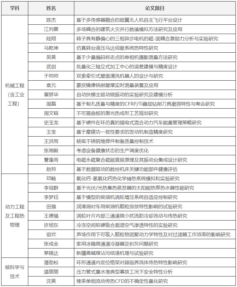 2018年3月,我院碩士畢業(yè)生論文答辯順利結束,219名碩士生通過答辯。其中,29名碩士生的學位論文被評為學院優(yōu)秀碩士學位論文,機械(含工業(yè))工程學科17篇、動力工程學科9篇、核工程學科3篇。具體名單如下: