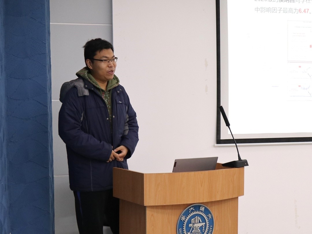 隨后,菁英會2019-2020年度負責人宋嘉誠同學做了年度工作總結(jié)。在上個學年,菁英會組織多次素拓團建,午餐會,羽毛球賽,學術(shù)沙龍等活動;菁英會會員在各類期刊、雜志及學術(shù)會議上發(fā)表文章30篇,申請專利3項,并參與國際學術(shù)會議7人次。