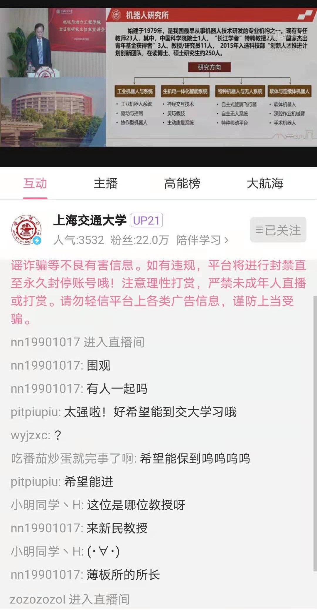 本次研究生招生宣講會通過騰訊會議、上海交通大學(xué)官方B站及抖音直播平臺進(jìn)行了同步直播,數(shù)據(jù)顯示,騰訊會議室300余名學(xué)生現(xiàn)場參會,交大官方B站及抖音平臺累計觀看人次突破3萬,獲得了高度關(guān)注。