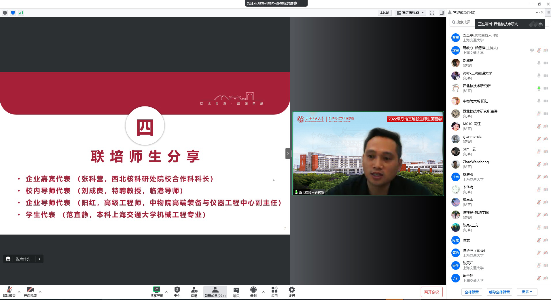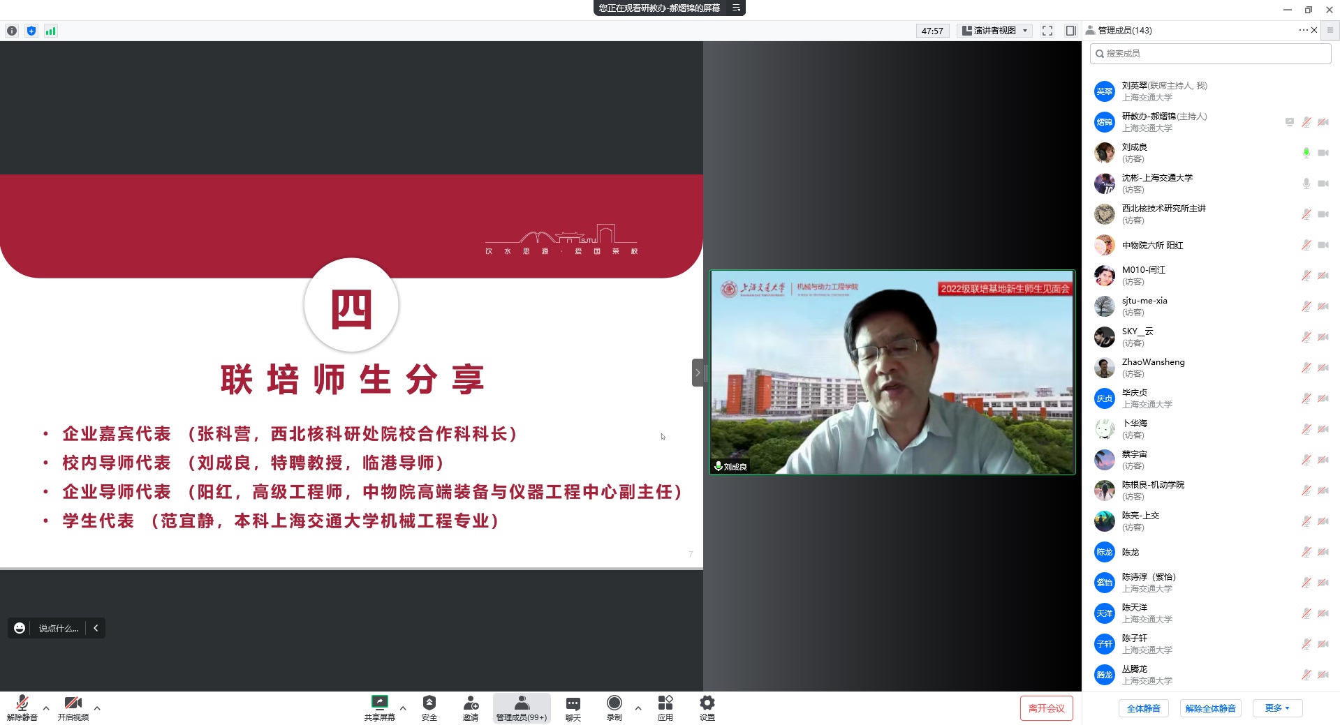 (臨港智能制造聯(lián)培基地師生見面分會(huì)場(chǎng):機(jī)械、工業(yè)工程與管理、能源動(dòng)力-動(dòng)力工程、能源動(dòng)力-核能與核技術(shù)工程)