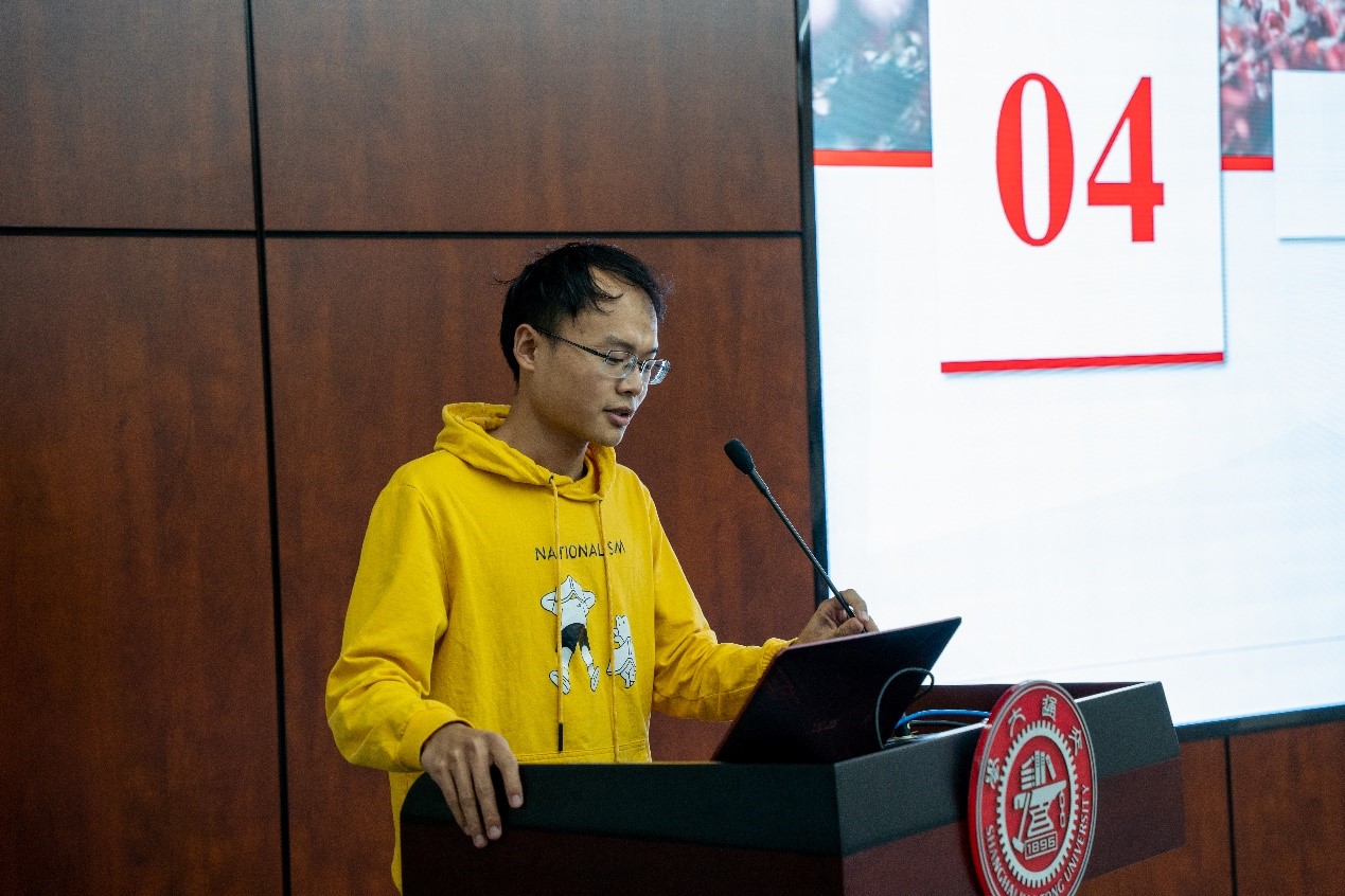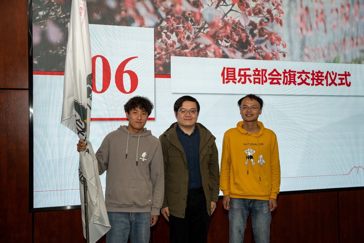 上一屆主席馮苗總結(jié)了俱樂部2021-2022學(xué)年建設(shè)情況,俱樂部成員獲榮譽獎項17人次,包括校學(xué)術(shù)之星1人、國家獎學(xué)金3人,各類期刊、雜志、學(xué)術(shù)會議發(fā)表論文44篇,獲專利和軟件著作權(quán)13項,學(xué)術(shù)交流、文化體育等活動也得到了蓬勃開展。新一屆主席千坤介紹了本屆俱樂部管理委員會的組成情況以及2022-2023學(xué)年的各部門工作計劃。管理委員會會旗交接儀式中,俱樂部指導(dǎo)老師夏唐斌將會旗從上一屆主席處轉(zhuǎn)交到了新一屆主席手中,礪遠學(xué)術(shù)俱樂部走上新一年的征程。