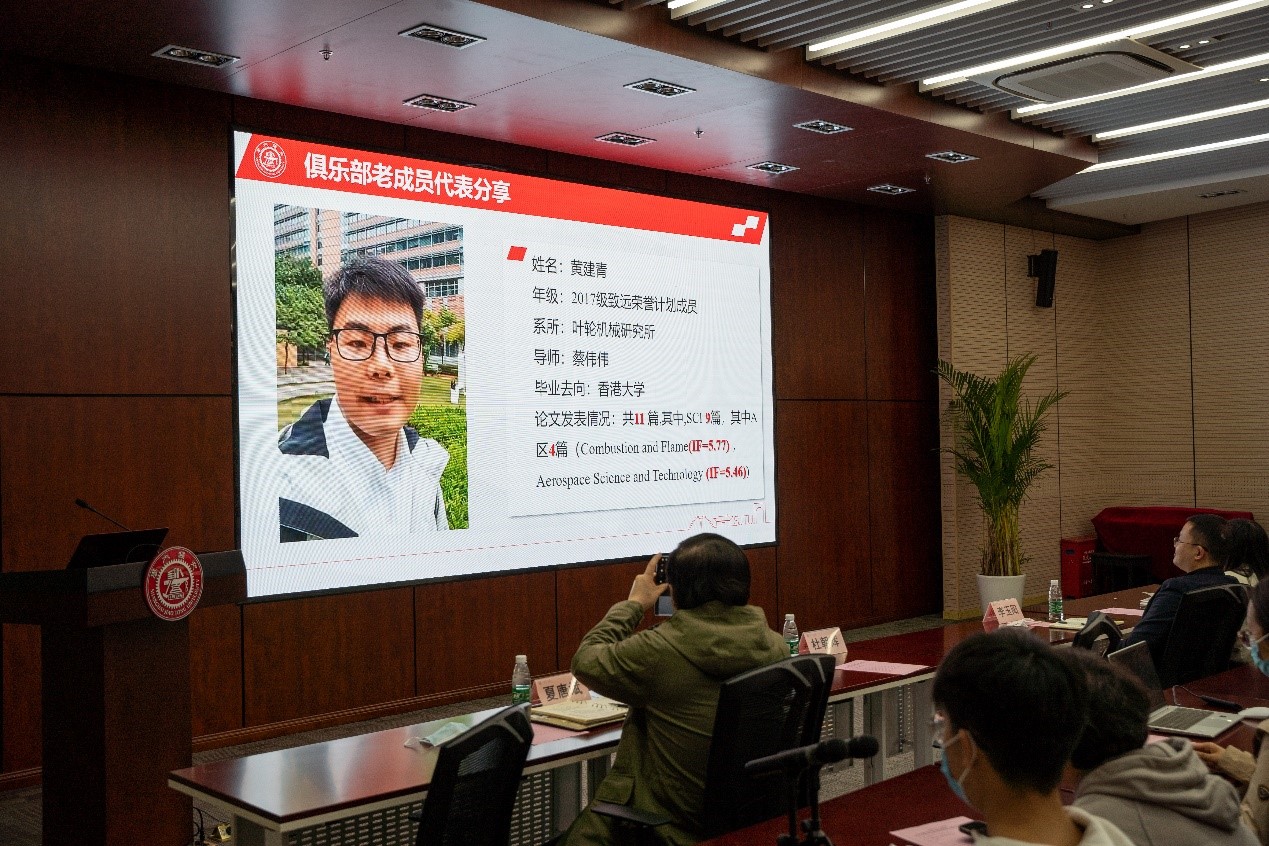 在俱樂部成員交流環(huán)節(jié),2017級博士研究生黨嘉強分享科研經(jīng)歷和個人感悟,勉勵成員踏實做事,靜待花開;2018級沈澤群用“迷茫”、“沉淀”、“收獲”三個關(guān)鍵詞來描述自己的博士生活,以“破山中之賊易,破心中之賊難”共勉;學(xué)校首批致遠榮譽計劃榮譽證書獲得者,2017級榮譽計劃博士生黃建青,在香港大學(xué)向大家分享了個人經(jīng)驗,并建議大家根據(jù)個人及環(huán)境條件準確及時調(diào)整步伐;2022級新生王夢瀟分享了入學(xué)以來的感受,并對學(xué)校和學(xué)院在疫情期間給予的支持表達感謝。