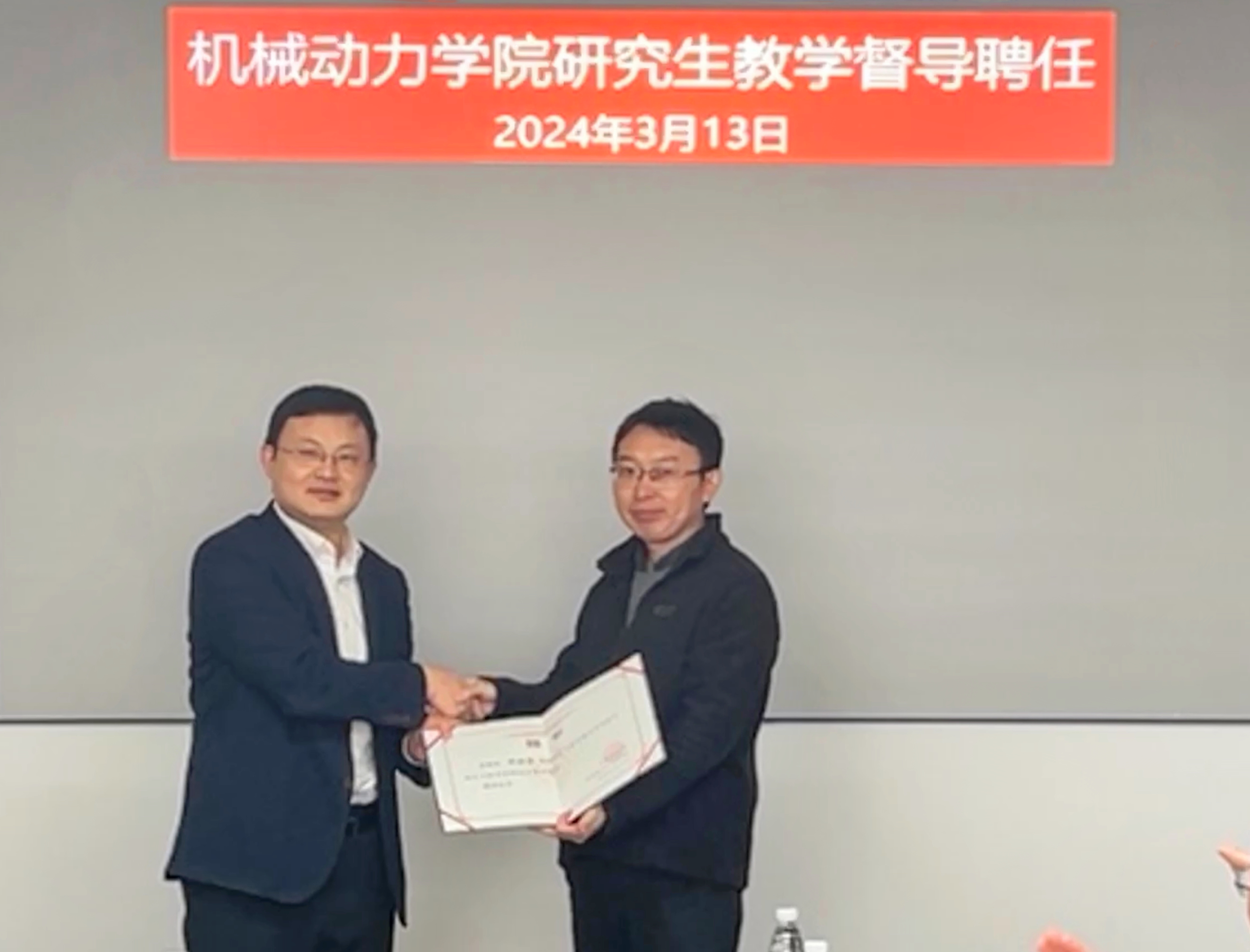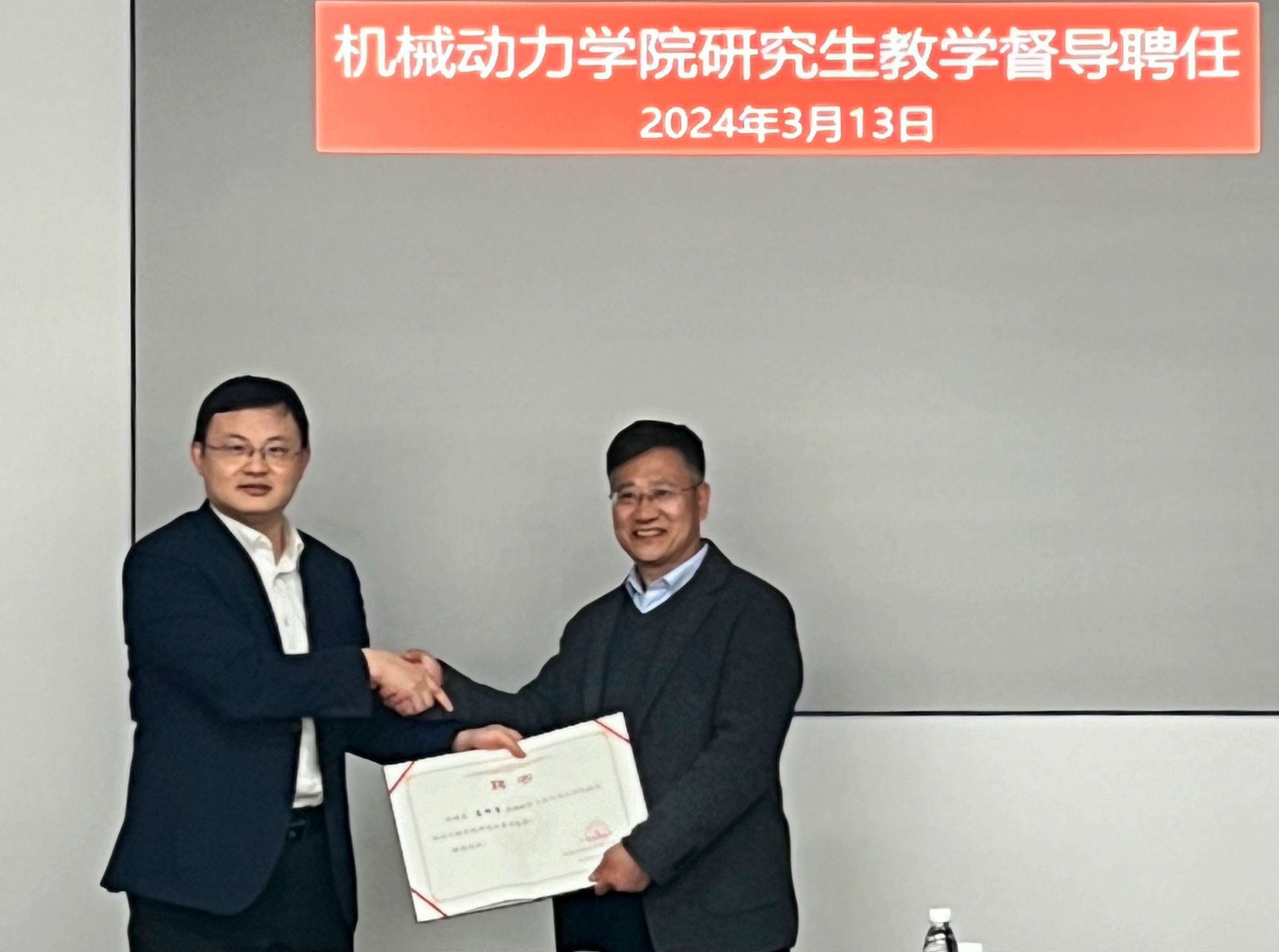 督導(dǎo)榮休及聘任儀式,李玉陽代表學(xué)院向榮休督導(dǎo)鄭輝教授表示誠摯感謝并贈(zèng)與紀(jì)念品,向孟祥慧教授、邱殿凱副教授頒發(fā)研究生教學(xué)督導(dǎo)聘書。鄭輝表示督導(dǎo)工作是段寶貴經(jīng)歷,既可強(qiáng)化教學(xué)質(zhì)量,也能帶來自我提升,并對研究生課程內(nèi)涵建設(shè)提出了建議。
