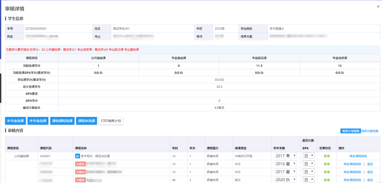 5、研究生新生培養(yǎng)計劃為草稿狀態(tài)即可選課;研究生老生培養(yǎng)計劃須經(jīng)導(dǎo)師審核通過后方可選課。