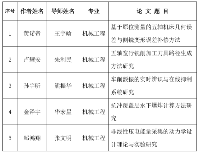 機(jī)械大學(xué)科獲獎(jiǎng)名單如下:
