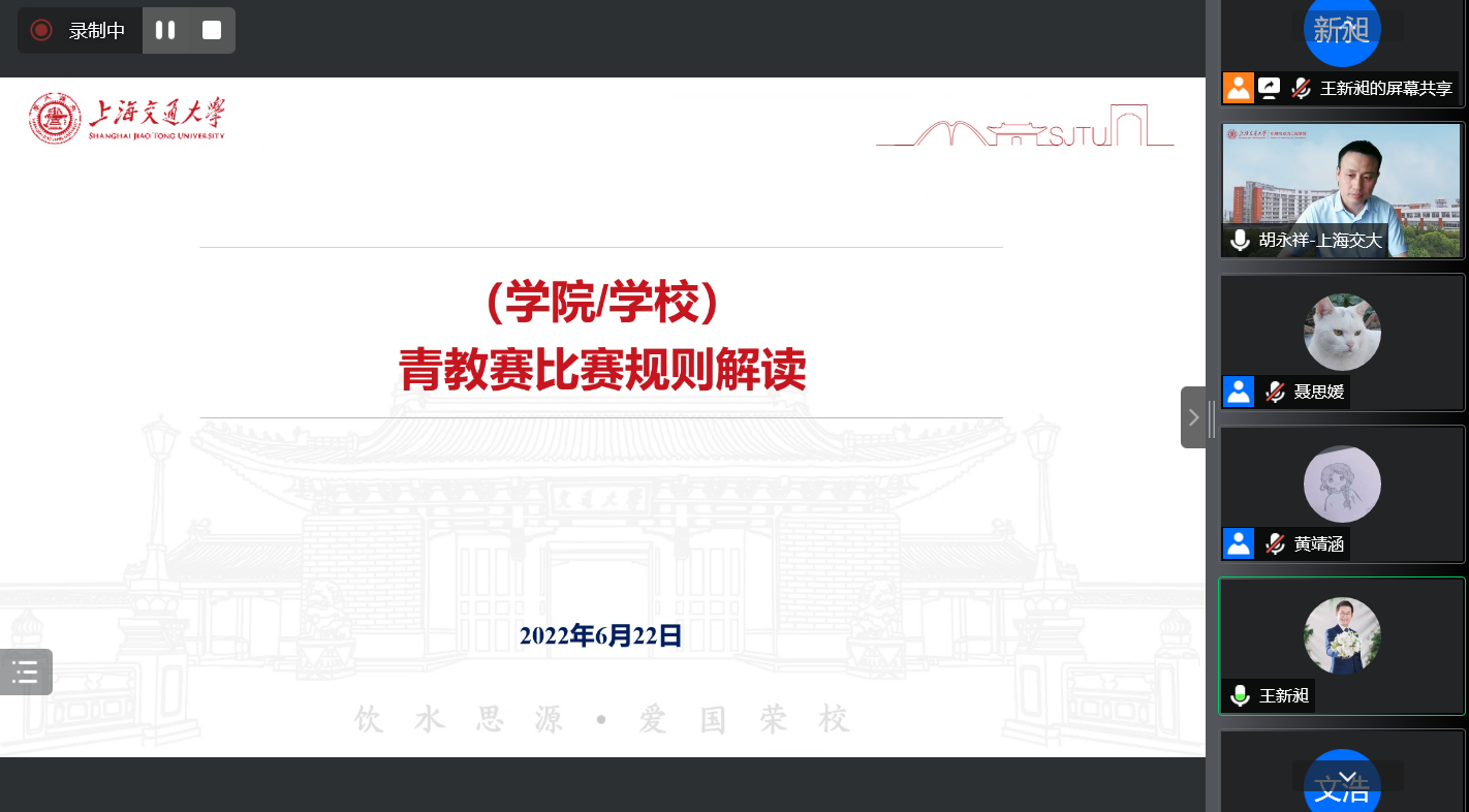 6月22日,學(xué)院2022年青年教師教學(xué)競(jìng)賽啟動(dòng)會(huì)線上舉辦。學(xué)院黨委副書(shū)記胡永祥、第五屆全國(guó)高校青年教師教學(xué)競(jìng)賽一等獎(jiǎng)獲得者劉曉晶及學(xué)院10余位青年教師參加了此次活動(dòng),活動(dòng)由王新昶主持。