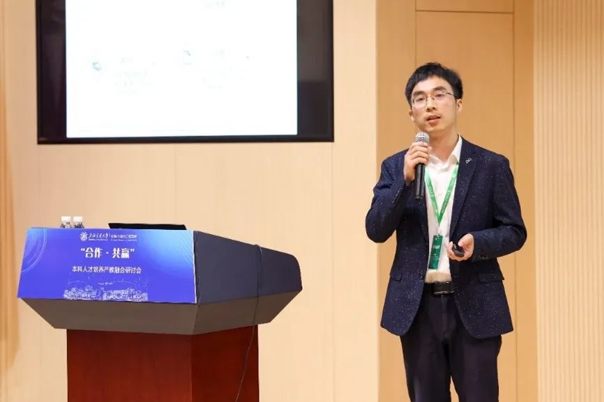 杜朝輝圍繞學院本科生培養(yǎng)理念及目標、產(chǎn)教融合平臺、畢業(yè)設計課程組織形式、管理模式等方面,介紹了校企聯(lián)合畢業(yè)設計改革與實踐情況。