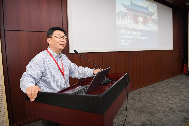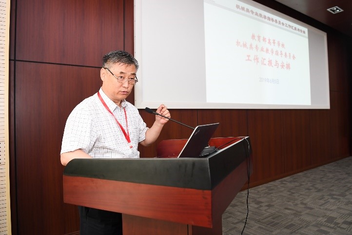 機械類教指委秘書長鞏亞東做機械類專業(yè)教學(xué)指導(dǎo)委員會報告,從工作原則、工作機制、工作組會議等方面匯報了教指委工作,介紹了教指委近期工作安排,就一流專業(yè)建設(shè)、一流課程建設(shè)等方面的要求與標準作了說明,并提供了工作建議。