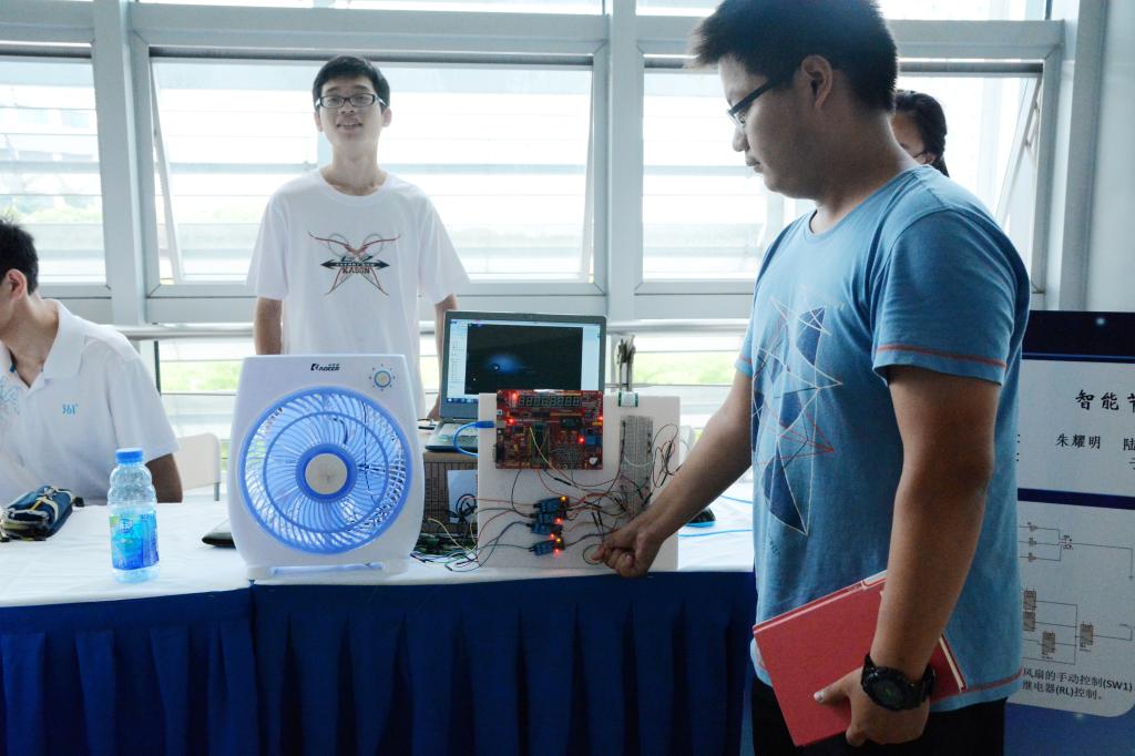 平價肘關(guān)節(jié)康復(fù)“神器”、省錢管家智能電扇、居家必備多功能頭戴式控制器……這些奇思妙想近日都在上海交通大學(xué)學(xué)子手中一一實現(xiàn)。6月14日,機(jī)械與動力工程學(xué)院2015年春季學(xué)期本科生課程項目成果展舉行,共展出近千名本科生完成的《工程學(xué)導(dǎo)論》、《設(shè)計與制造I》及《工程設(shè)計》三門課程的217個課程設(shè)計項目。選題設(shè)計來自于校企合作項目、指導(dǎo)教師研究課題以及學(xué)生自選發(fā)明等。通過成果展示與校企專家評審的方式,讓學(xué)生在展示過程中培養(yǎng)綜合能力,在與專家及業(yè)界人士互動交流中激發(fā)創(chuàng)造力。