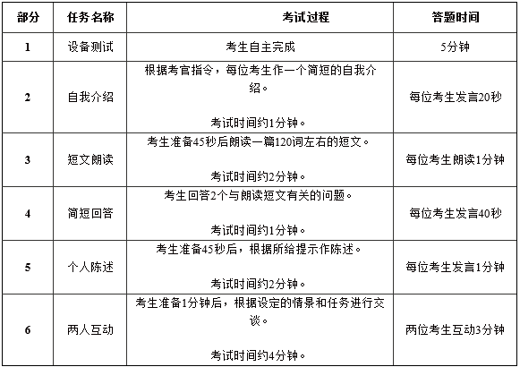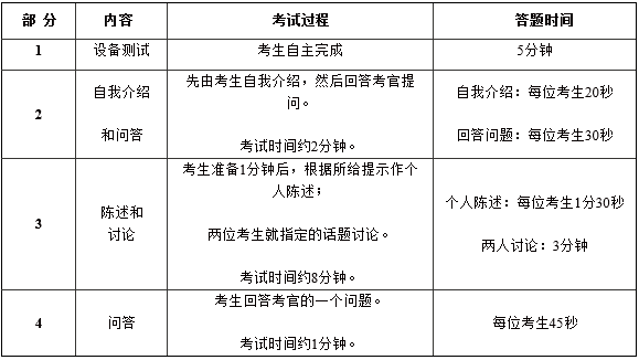 考試采用計(jì)算機(jī)化考試。考生在計(jì)算機(jī)上進(jìn)行考生與模擬考官、考生與考生之間的互動(dòng)。