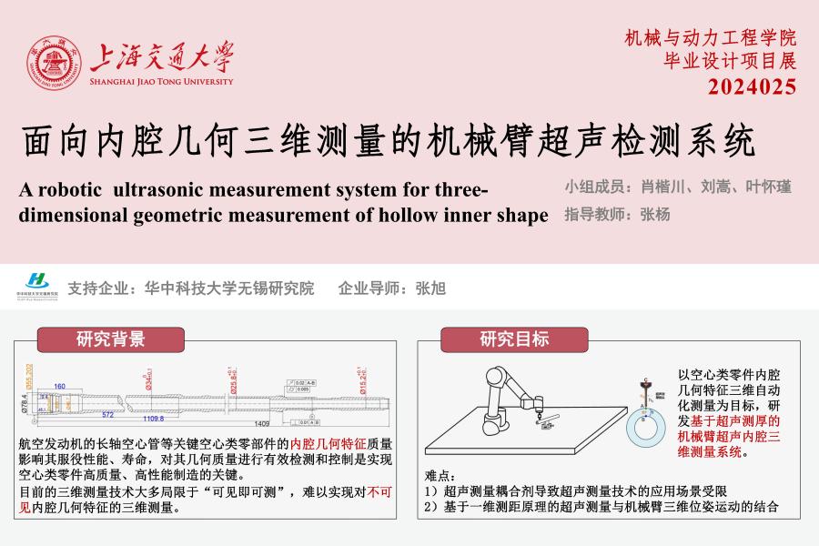 由于航空發(fā)動機空心葉片、長軸空心管等關鍵空心類零部件的內(nèi)腔幾何特征質量影響其服役性能、壽命,對其幾何質量進行有效檢測和控制是實現(xiàn)空心類零件高質量、高性能制造的關鍵。目前的幾何三維測量技術,大多局限于“可見即可測”,難以實現(xiàn)對不可見內(nèi)腔幾何特征的測量,而超聲測量與常規(guī)三坐標測量技術結合后具有實現(xiàn)內(nèi)腔幾何特征三維測量的潛力。因此本項目圍繞內(nèi)腔三維幾何測量的相關問題,開展了機械臂超聲檢測系統(tǒng)的相關研究。