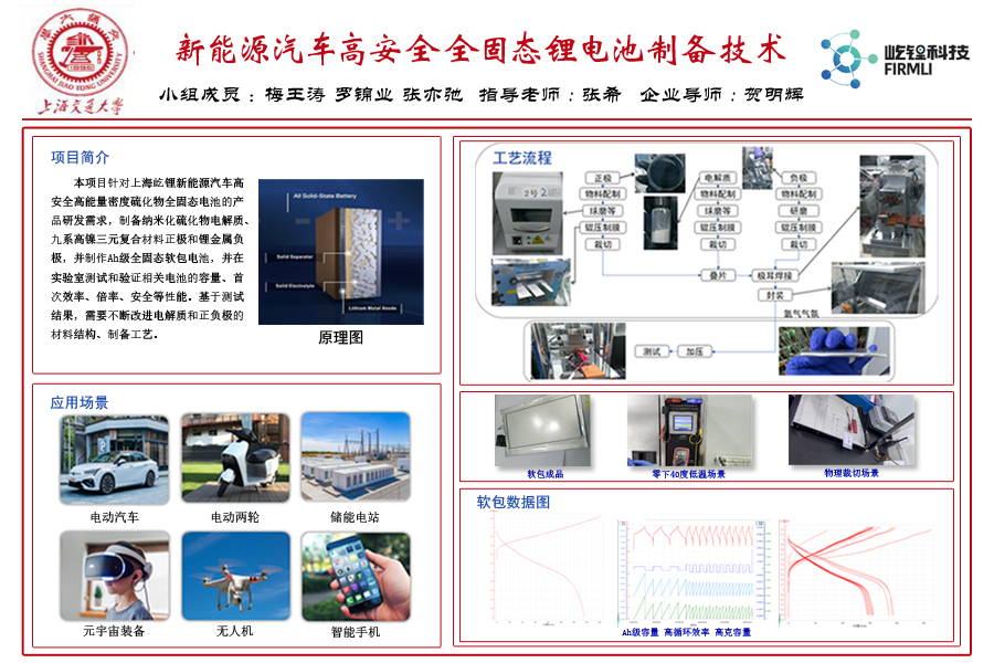 隨著新能源汽車市場的迅速增長,對電池性能的不斷提升成為行業(yè)關(guān)注的焦點。為從根本性上解決新能源汽車電池安全與續(xù)航問題, 硫化物全固態(tài)電池已被公認為是下一代動力電池的必然選擇。本項目針對上海屹鋰新能源汽車高安全高能量密度硫化物全固態(tài)電池的產(chǎn)品研發(fā)需求,對全固態(tài)電解質(zhì)、正極和負極的材料結(jié)構(gòu)、制備工藝進行優(yōu)化,并制備Ah級軟包動力電池,通過實驗室測試驗證電池性能。