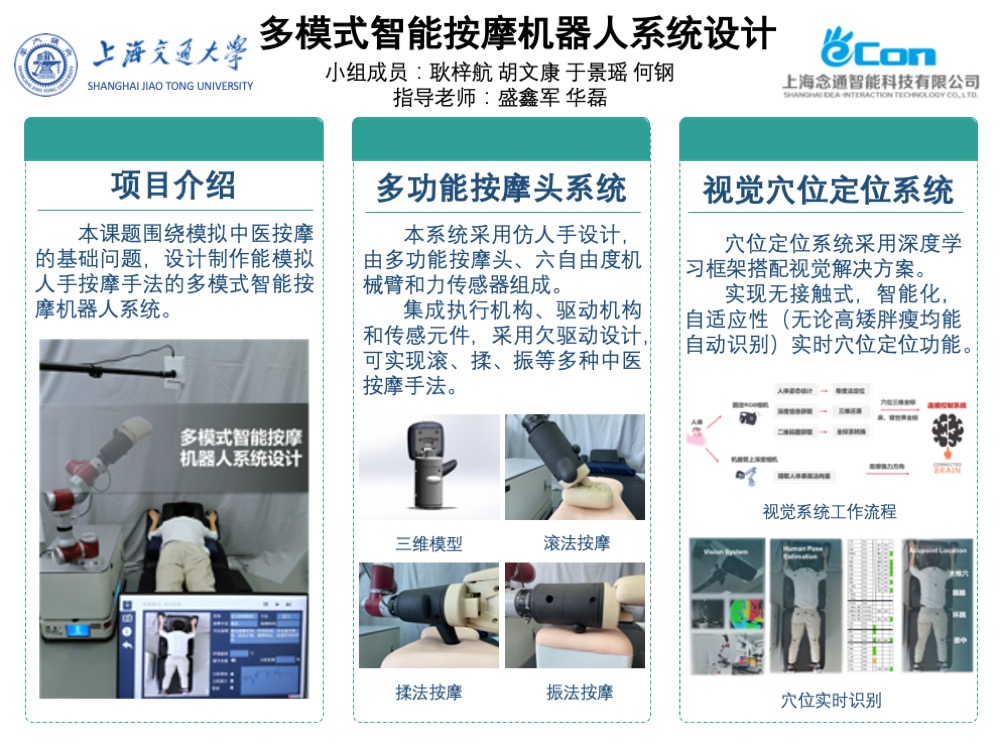 目前中醫(yī)按摩市場(chǎng)需求龐大,但專(zhuān)業(yè)中醫(yī)按摩師非常緊缺,已有的按摩器械由于缺乏中醫(yī)基礎(chǔ)理論指導(dǎo),存在設(shè)計(jì)不匹配人體生理結(jié)構(gòu)以及難以識(shí)別穴位實(shí)施中醫(yī)按摩手法等問(wèn)題,大大限制了其臨床療效,也限制了中醫(yī)特色和優(yōu)勢(shì)的發(fā)揮。本課題圍繞模擬中醫(yī)按摩的基礎(chǔ)問(wèn)題,在穴位自主定位和多模式中醫(yī)按摩手法兩方面形成技術(shù)突破,結(jié)合智能按摩策略以及AGV自主規(guī)劃控制,設(shè)計(jì)制作能模擬人手按摩手法的多模式智能按摩機(jī)器人系統(tǒng)。