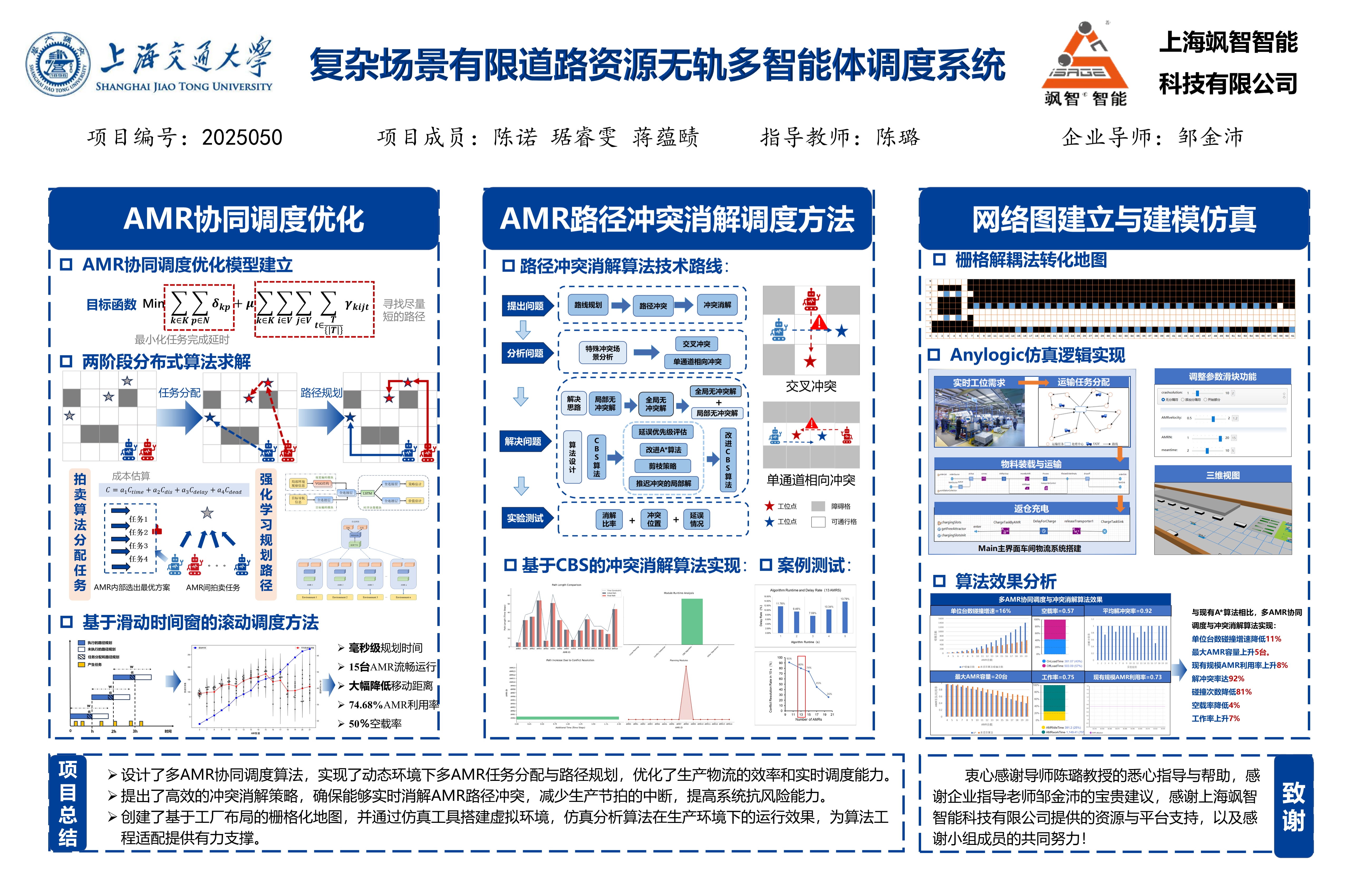 1. 開發(fā)有限道路資源下多 AMR 協(xié)同路徑規(guī)劃,提升計(jì)算效率與響應(yīng)速度,實(shí)現(xiàn)任務(wù)自動(dòng)分配與路徑規(guī)劃。