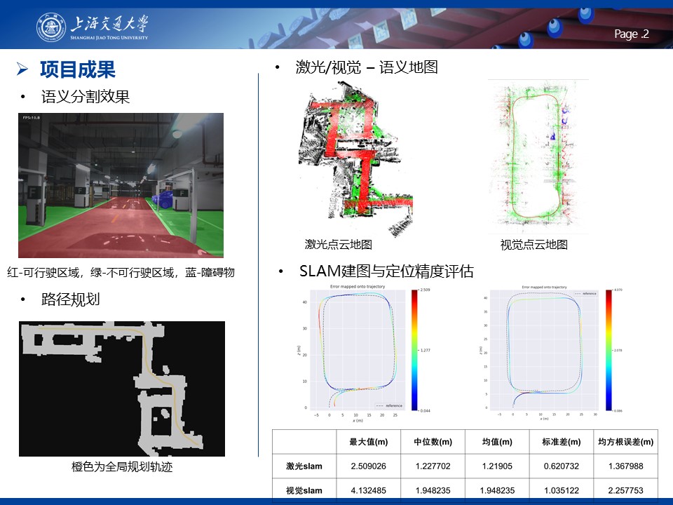 停車難、停車不規(guī)范并且易剮蹭都是泊車過程帶來不便。地下停車場具有無衛(wèi)星信號、場景簡單、特征重復(fù)的特點(diǎn),因此自動泊車的關(guān)鍵在于更精確的建圖與定位。小組成員一方面用兩種SLAM方法對場景進(jìn)行建圖與定位,另一方面引入語義分割提取出場景中每個(gè)物體的語義標(biāo)簽,在SLAM建圖過程中進(jìn)行優(yōu)化并剔除動態(tài)物體,從而提高建圖與定位精度。