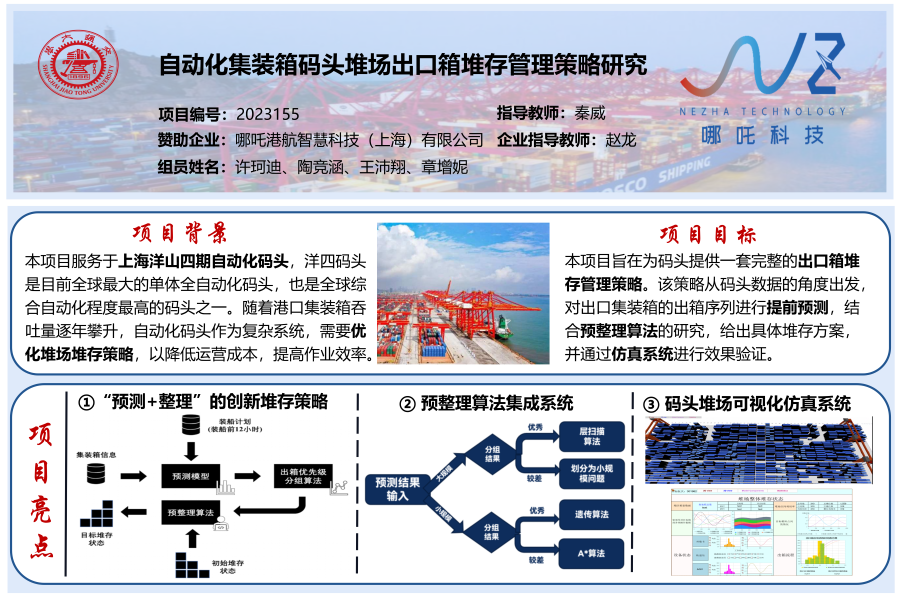 本項(xiàng)目通過對(duì)洋山四期自動(dòng)化集裝箱碼頭數(shù)百萬條數(shù)據(jù)的分析,驗(yàn)證了堆場(chǎng)是碼頭的瓶頸環(huán)節(jié),并且驗(yàn)證了堆場(chǎng)翻箱和服務(wù)效率的相關(guān)性,從數(shù)據(jù)的角度,有力的論證了堆場(chǎng)是目前碼頭管理的重中之重。從數(shù)據(jù)中提取特征,對(duì)集裝箱出箱順序進(jìn)行有效的預(yù)測(cè),有著了極高的準(zhǔn)確率,根據(jù)此結(jié)果編寫了不同的算法,解決工程中不同規(guī)模、不同復(fù)雜度的集裝箱異地整理問題,可以在10分鐘內(nèi)解決出大部分集裝箱數(shù)量在30個(gè)以內(nèi)的整理問題。最后通過建立仿真模型,對(duì)本項(xiàng)目提出的方案進(jìn)行驗(yàn)證,得到了碼頭方工程師的高度認(rèn)可,并且依據(jù)此項(xiàng)目?jī)?nèi)容,撰寫了兩篇學(xué)術(shù)論文,項(xiàng)目研究兼具工程應(yīng)用性和學(xué)術(shù)研究性。