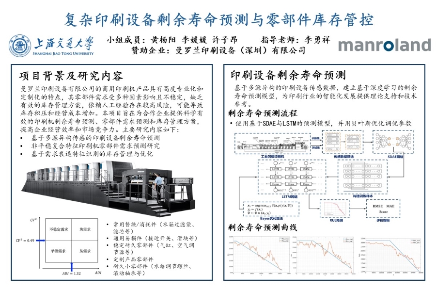 曼羅蘭平張印刷系統(tǒng)有限公司成立于1871年,是全球領(lǐng)先的,服務(wù)于商業(yè)印刷、包裝印刷和出版應(yīng)用領(lǐng)域的單張紙膠印機(jī)及相關(guān)技術(shù)的制造商。企業(yè)商用印刷機(jī)產(chǎn)品具有高度專業(yè)化和定制化的特點,其零部件需求受多種因素影響且不穩(wěn)定,缺乏有效的庫存管理方案,依賴人工經(jīng)驗存在較高風(fēng)險,可能導(dǎo)致庫存積壓和經(jīng)營成本增加。本項目旨在為合作企業(yè)提供科學(xué)有效的印刷機(jī)剩余壽命預(yù)測、零部件需求預(yù)測和庫存管理方案,提高企業(yè)經(jīng)營效率和市場競爭力。