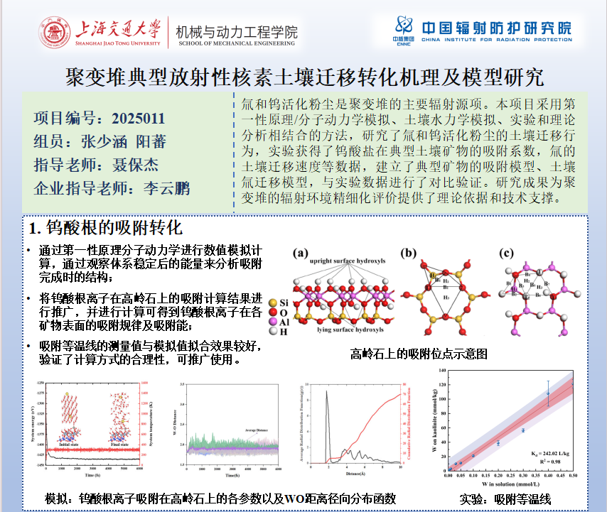 聚變堆是核能發(fā)展的最終選擇,也是目前人類解決未來(lái)能源問(wèn)題的根本途徑之一。鎢及其合金因其高熔點(diǎn)、低濺射率及較低的氚滯留等優(yōu)勢(shì)被認(rèn)為是理想的面向等離子體候選材料,在高能中子輻照下,聚變堆運(yùn)行中會(huì)產(chǎn)生一定水平鎢活化粉塵;氚是聚變堆的燃料,堆內(nèi)氚盤存量可達(dá)千克量級(jí)。氚和鎢活化粉塵具有可移動(dòng)性特點(diǎn),是聚變堆的主要輻射源項(xiàng)。特別在事故工況下,會(huì)向環(huán)境釋放一定水平氚和氣載鎢活化粉塵,經(jīng)大氣擴(kuò)散沉積在周邊土壤環(huán)境中。氚和鎢活化粉塵在土壤中會(huì)發(fā)生復(fù)雜行為:形態(tài)轉(zhuǎn)化、吸附/解吸、遷移等,其遷移轉(zhuǎn)化機(jī)制尚不明確,模型尚未建立。