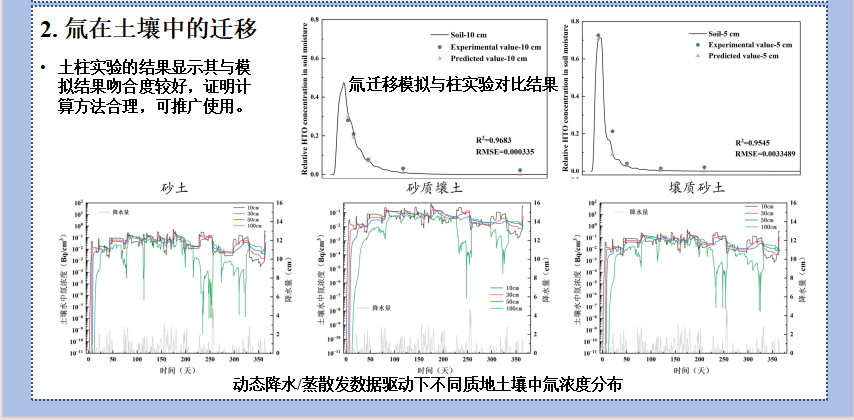 探究了源項(xiàng)、土壤類型、氣象條件以及植物種類對(duì)氚在土壤中遷移的影響,得到了不同條件對(duì)于氚在土壤中的遷移行為的具體影響形式,總結(jié)歸納出不同條件對(duì)于氚在土壤中的遷移行為的不同影響程度。進(jìn)行氚的土柱實(shí)驗(yàn),得到實(shí)驗(yàn)數(shù)據(jù),與模擬數(shù)據(jù)進(jìn)行比對(duì),通過(guò)對(duì)二者的結(jié)果進(jìn)行比對(duì),以確保結(jié)果的合理性。