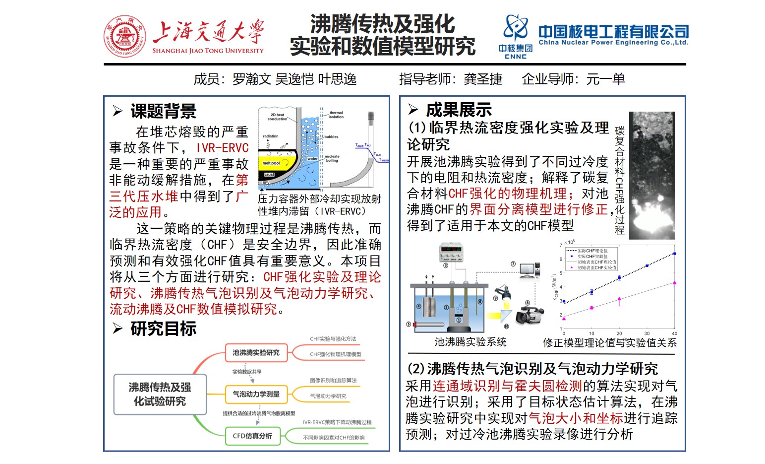設(shè)計搭建池沸騰實驗系統(tǒng),完成碳復(fù)合材料的CHF實驗測試;采用高速相機拍攝氣泡;采用SEM測量加熱器表面形貌;探索CHF的物理機理模型。
