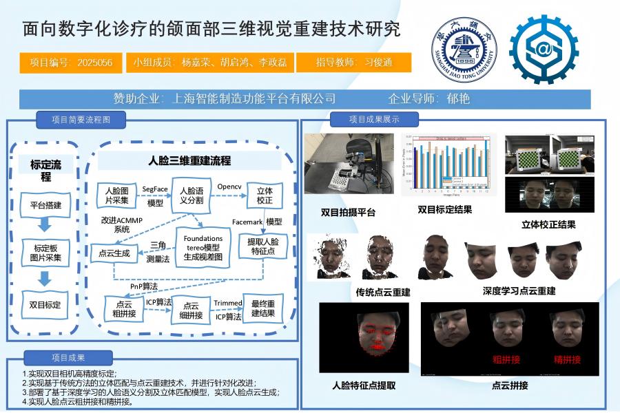 三維人臉數(shù)據(jù)對比二維圖像,因其包含皮膚紋理、形狀與空間信息,能夠更有效地處理光照、遮擋、表情和姿態(tài)等變化,具有更高的魯棒性及精度,因此三維人臉重建技術(shù)在虛擬現(xiàn)實(shí)、增強(qiáng)現(xiàn)實(shí)及醫(yī)療美容等領(lǐng)域的應(yīng)用前景廣闊。本項(xiàng)目旨在開展基于雙目相機(jī)技術(shù)的人體面部三維重建研究,圍繞雙目相機(jī)高精度標(biāo)定、立體匹配、人臉點(diǎn)云重建、人臉點(diǎn)云拼接及深度學(xué)習(xí)優(yōu)化進(jìn)行技術(shù)攻關(guān),最終實(shí)現(xiàn)一套集成化的三維重建方法體系。通過該體系的開發(fā)與優(yōu)化,提升面部重建精度與效率,為人臉識(shí)別、虛擬現(xiàn)實(shí)、醫(yī)療美容等領(lǐng)域提供技術(shù)支持。