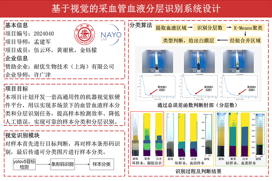 本項(xiàng)目計(jì)劃開發(fā)一套高通用性的機(jī)器視覺軟硬件平臺,用以實(shí)現(xiàn)多場景下的血管血液樣本分類和分層識別任務(wù)。該平臺可服務(wù)于醫(yī)療機(jī)構(gòu)、實(shí)驗(yàn)室等檢測場景,提高樣本檢測效率、降低人工錯誤,實(shí)現(xiàn)可靠的樣本分類和分層識別。本項(xiàng)目由三個主要部分組成:樣本檢測硬件平臺;嵌入式系統(tǒng)及交互模塊;視覺識別模塊。計(jì)劃在嵌入式平臺上實(shí)現(xiàn)圖片在線標(biāo)注和檢測結(jié)果評估等功能,并提供具有良好交互性的用戶界面。