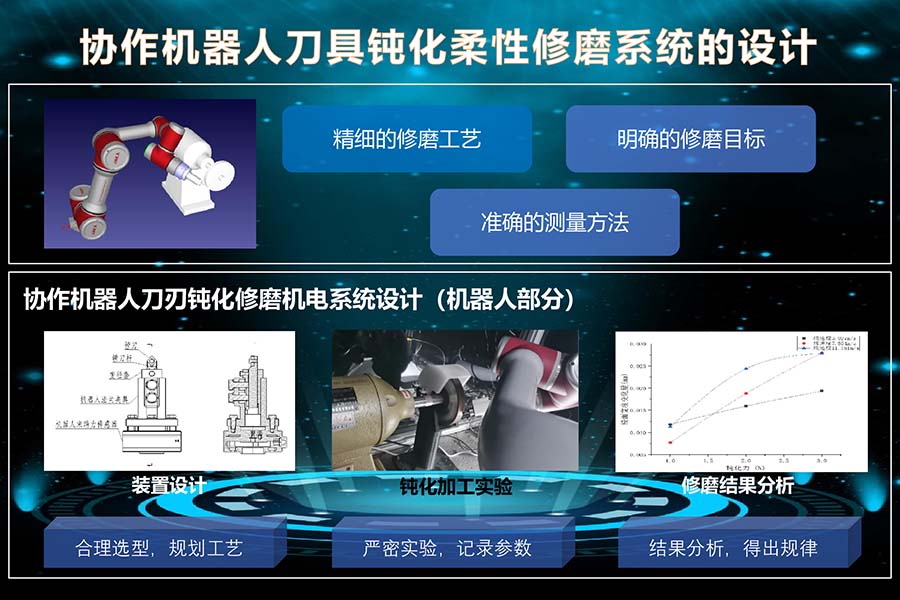 本項目將基于企業(yè)對刀刃鈍化修磨的需要,研發(fā)一款協(xié)作機(jī)器人刀具修磨設(shè)備,并完成以下目標(biāo):