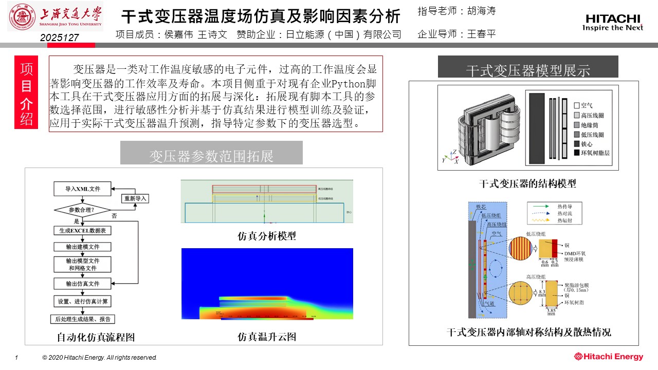 變壓器是一類對工作溫度敏感的電子元件,過高的工作溫度會顯著影響變壓器的工作效率及壽命。然而,變壓器的鐵心、線圈繞組等部分均會因電磁損耗而在工作中不斷產(chǎn)生熱量。不同類型的變壓器在結(jié)構(gòu)、材料參數(shù)等方面均存在較大差異,而同種類型的變壓器由于設(shè)計(jì)時(shí)參數(shù)選取不同在溫升性能方面同樣有所區(qū)別。因此,對于變壓器在設(shè)計(jì)階段的溫升的校核仿真顯得尤為重要。目前國內(nèi)外已有不少研究實(shí)現(xiàn)了對于溫度場的有限元分析。本項(xiàng)目側(cè)重于對現(xiàn)有企業(yè)Python腳本工具在干式變壓器應(yīng)用方面的拓展與深化,兩位同學(xué)分別負(fù)責(zé)對干式變壓器溫升進(jìn)行敏感性分析并拓展參數(shù)選擇范圍、通過機(jī)器學(xué)習(xí)預(yù)測變壓器溫升仿真結(jié)果,最終項(xiàng)目實(shí)現(xiàn)在參數(shù)拓展范圍下利用機(jī)器學(xué)習(xí)預(yù)測變壓器溫升從而指導(dǎo)選型。