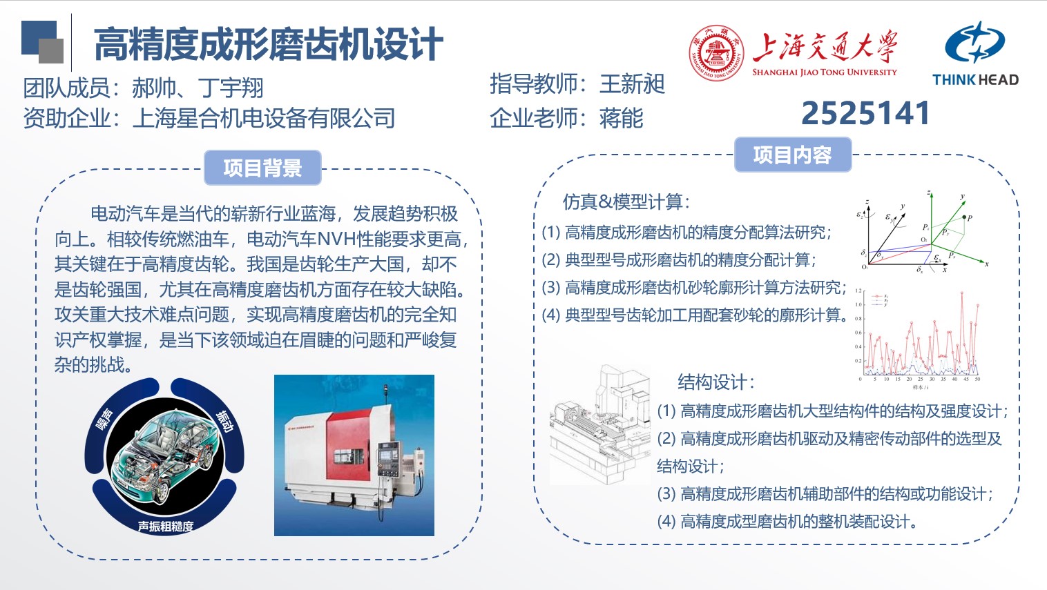 隨著電動(dòng)汽車產(chǎn)業(yè)的迅猛發(fā)展、尤其是驅(qū)動(dòng)電機(jī)轉(zhuǎn)速的大幅提升,對(duì)于電動(dòng)汽車齒輪減速箱傳動(dòng)齒輪,因其與電動(dòng)汽車整車的噪聲、振動(dòng)與聲振粗糙度性能密切相關(guān),故對(duì)精度等級(jí)要求越來越高;此外,高精度齒輪也是高端數(shù)控機(jī)床等重大裝備高精度可靠運(yùn)轉(zhuǎn)的核心零部件。高精度齒輪精密加工最常用的工藝是成形磨削工藝,但是,國內(nèi)高精度成形磨齒機(jī)嚴(yán)重依賴進(jìn)口,國內(nèi)外技術(shù)水平差距巨大。本項(xiàng)目旨在突破高精度成形磨齒機(jī)的關(guān)鍵設(shè)計(jì)方法,完成高精度成形磨齒機(jī)裝備的完全自主設(shè)計(jì)。