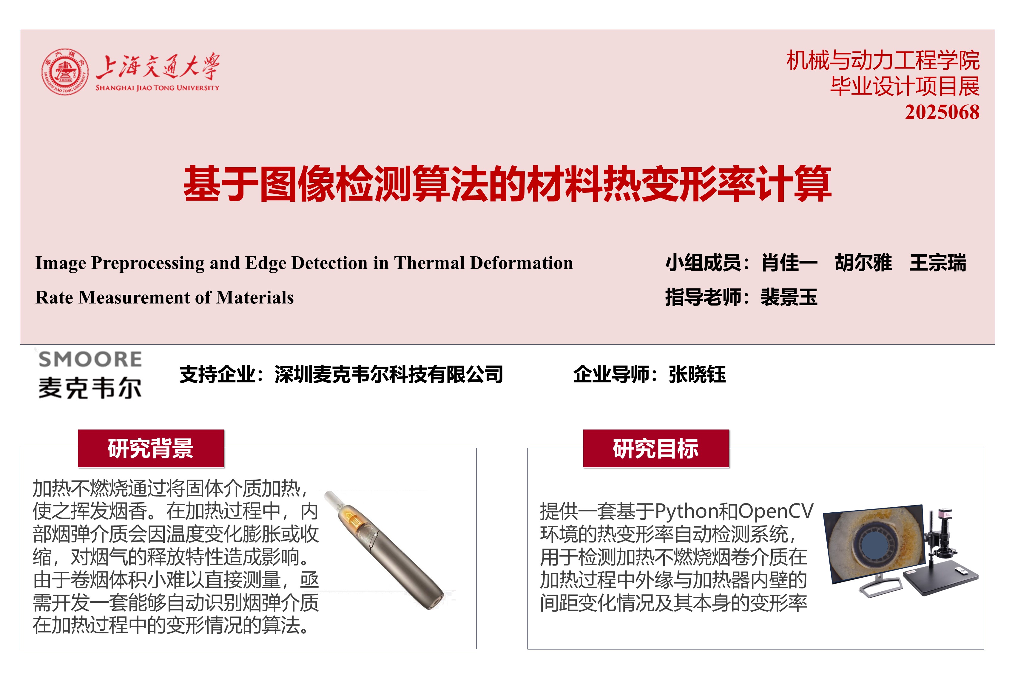 本項目旨在提供一套基于Python的OpenCV環(huán)境的熱變形率自動檢測系統(tǒng),用于檢測加熱不燃燒煙卷介質(zhì)在加熱過程中外緣與加熱器內(nèi)壁的間距變化情況及其本身的變形率。需輸入介質(zhì)加熱變化視頻,輸出其變形率和間隙等數(shù)據(jù)隨時間變化的曲線。生產(chǎn)方需求包括:能精準識別并去除煙霧、降低對拍攝設備的要求、提高對介質(zhì)變形情況的識別精度等。