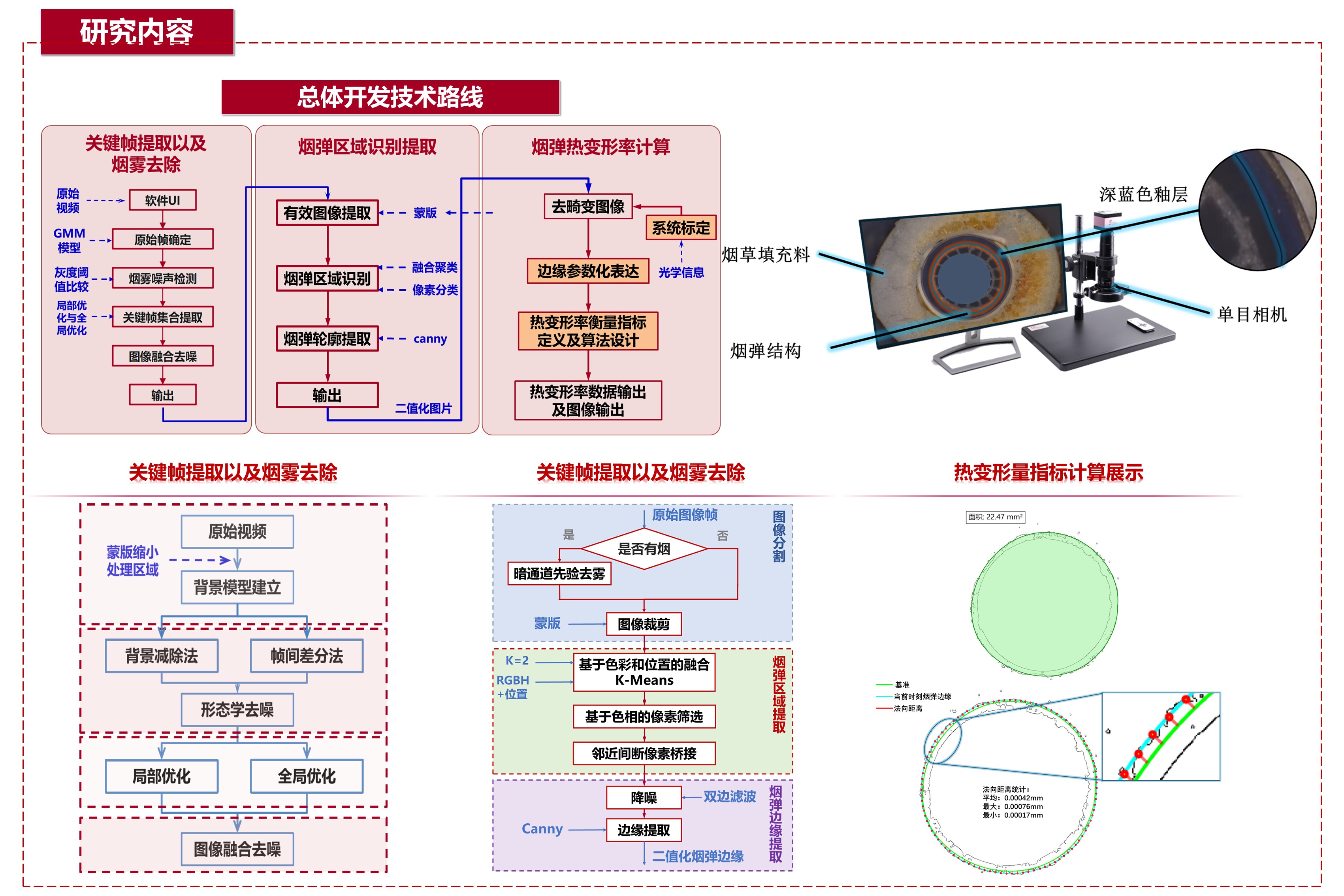 作為一種新型煙草產(chǎn)品,加熱不燃燒通過將固體介質(zhì)加熱,使之揮發(fā)煙香,煙氣在加熱過程中的釋放特性是當前新型煙草產(chǎn)業(yè)中研究的熱點之一。在加熱全過程中,加熱器內(nèi)部的煙彈介質(zhì)會因溫度變化膨脹或收縮,導致介質(zhì)外緣與加熱器內(nèi)壁的間隙大小改變,從而改變傳熱過程,對煙氣的釋放特性造成影響。但考慮到加熱不燃燒卷煙體積小,加熱過程整體溫度高且有煙霧包裹,很難直接對介質(zhì)尺寸進行測量,因此為了解煙彈固體介質(zhì)的變形情況,需開發(fā)一套能夠自動識別煙彈介質(zhì)在加熱過程中的變形情況的算法。