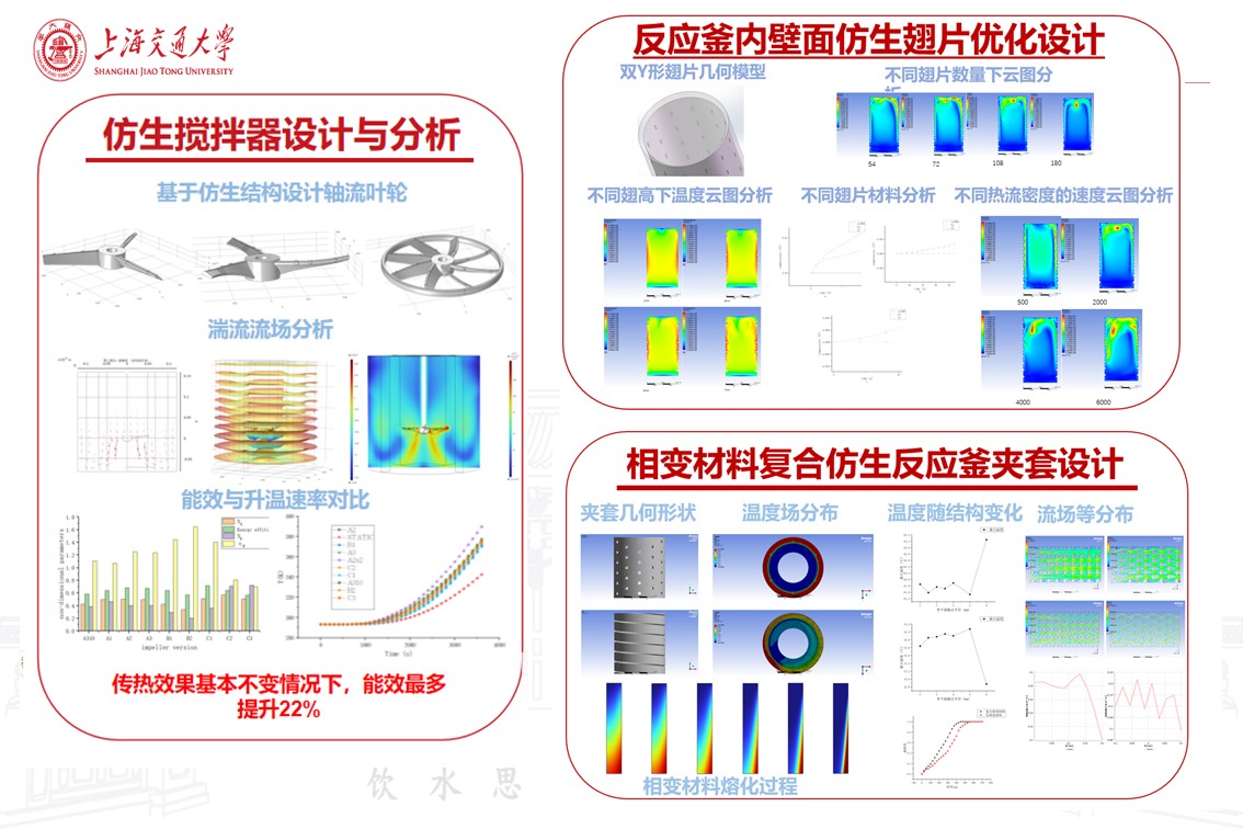 對(duì)現(xiàn)有的仿生結(jié)構(gòu)以及反應(yīng)釜結(jié)構(gòu)進(jìn)行調(diào)研,建立幾種比較成熟的模型,通過(guò)Ansys等工程軟件對(duì)模型進(jìn)行溫度場(chǎng)、流場(chǎng)的分析,對(duì)比仿真結(jié)果,得出最優(yōu)的設(shè)計(jì)方案。本項(xiàng)目分四個(gè)方向同步進(jìn)行,每個(gè)方向的目標(biāo)如下: