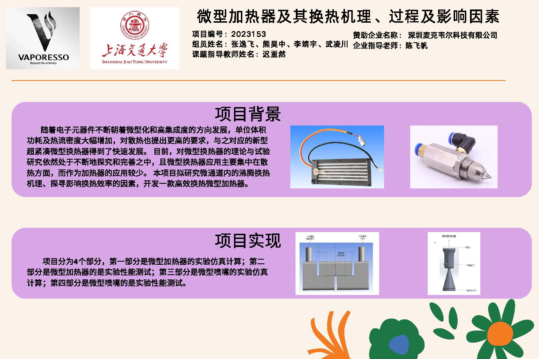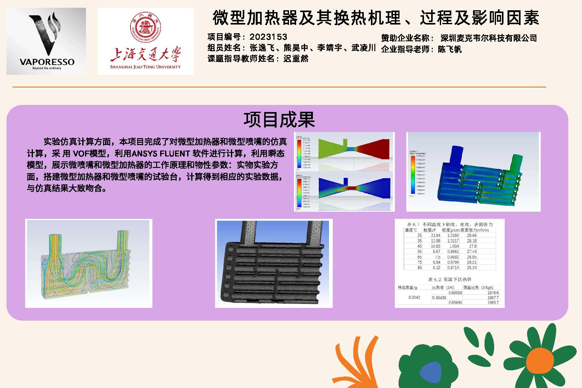 隨著電子元器件不斷朝著微型化和高集成度的方向發(fā)展,單位體積功耗及熱流密度大幅增加,對傳熱性能也提出更高的要求,與之對應(yīng)的新型超緊湊微型換熱器得到了快速發(fā)展。目前對微型換熱器的理論與試驗研究依然處于不斷地探究和完善之中,且微型換熱器應(yīng)用主要集中在散熱方面,而作為加熱器/霧化器的應(yīng)用較少。,本項目擬研究微噴嘴-微通道系統(tǒng)的霧化與相變機理,探尋影響加熱效率與霧化蒸發(fā)效果的因素,嘗試開發(fā)一款滿足企業(yè)各項需求的高效微型加熱器,并追求其商用價值。