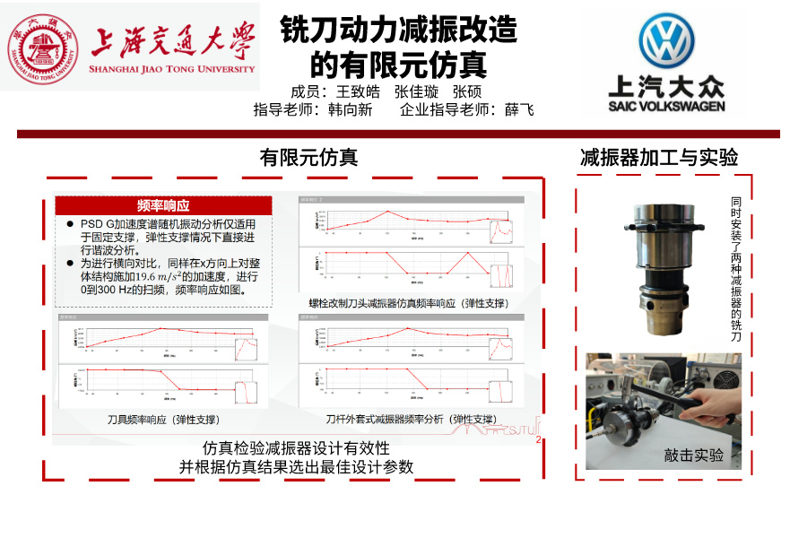 缸體是發(fā)動(dòng)機(jī)加工中加工難度與體量最大的零件,材料硬度高,加工刀具所受應(yīng)力大,在缸體銑削加工中有多款刀具,懸臂長(zhǎng)、切削力大,當(dāng)?shù)毒叩拈L(zhǎng)徑比較大時(shí),若受到一定的切削力會(huì)產(chǎn)生明顯的振動(dòng)。振動(dòng)不僅限制了金屬切削過程中的效率,還降低了工件的表面質(zhì)量,增加了刀具磨損的速率,造成了加工噪聲。因此,金屬切削過程中避免和抑制振動(dòng)非常重要,這也是大眾公司設(shè)立課題進(jìn)行研究的目的。為降低振動(dòng)對(duì)銑削加工的影響,本課題通過設(shè)計(jì)加裝在銑刀上的動(dòng)力減振裝置,改善銑刀加工過程中的動(dòng)力結(jié)構(gòu),從而實(shí)現(xiàn)系統(tǒng)性有效減振。項(xiàng)目首先通過Ansys和Abaqus兩種軟件進(jìn)行有限元仿真,設(shè)計(jì)適應(yīng)安裝在刀桿上的動(dòng)力減振器。通過對(duì)比選擇最佳的減振器設(shè)計(jì)方案加工出實(shí)體模型進(jìn)行性能測(cè)試。預(yù)期實(shí)現(xiàn)減小切削振動(dòng)最優(yōu)效果,降低噪音,提升刀具壽命,降低生產(chǎn)成本。
