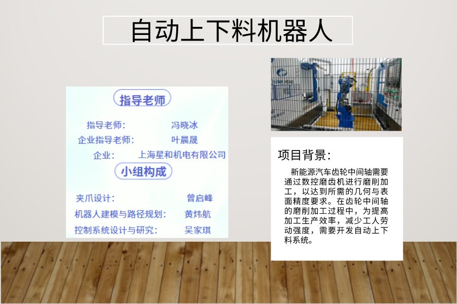 本項目設計一套自動上下料系統(tǒng)以實現新能源汽車齒輪中間軸高精度磨削自動化加工流程。該系統(tǒng)由磨齒機、工業(yè)機器人及其控制器、夾爪設備、上下料盤設備、清洗設備、車間安全設備和電器柜組成。自動上下料系統(tǒng)能夠實現快速、大批量加工,節(jié)省人力成本,提高生產效率,并降低工人勞動強度。它具有高效率、高穩(wěn)定性、結構簡單易于維護、適應不同產品的生產等優(yōu)點。