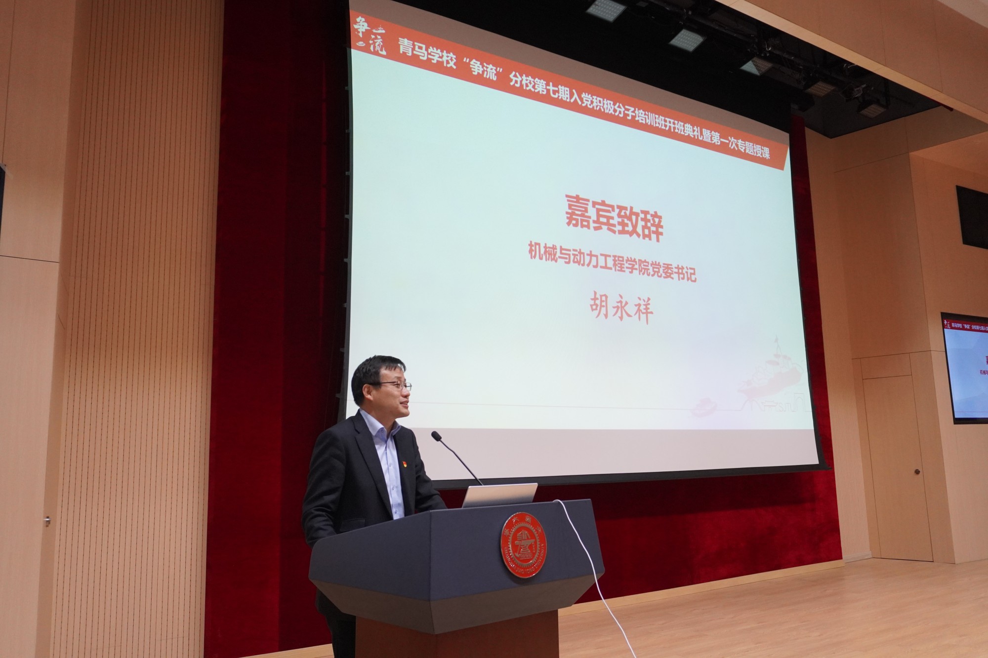 4月10日,由機(jī)械與動(dòng)力工程學(xué)院和中英國(guó)際低碳學(xué)院聯(lián)合開(kāi)辦的青年馬克思主義學(xué)校“爭(zhēng)流”分校第七期入黨積極分子培訓(xùn)班開(kāi)班典禮舉行。上海交通大學(xué)關(guān)工委副主任、黨委組織部特邀黨建組織員陶燕敏,機(jī)械與動(dòng)力工程學(xué)院黨委書(shū)記胡永祥,以及培訓(xùn)班全體學(xué)員等參加了典禮。活動(dòng)邀請(qǐng)第二屆全國(guó)高校思政課教學(xué)展示“特等獎(jiǎng)”獲得者、馬克思主義學(xué)院副教授孔德猛上專題黨課。