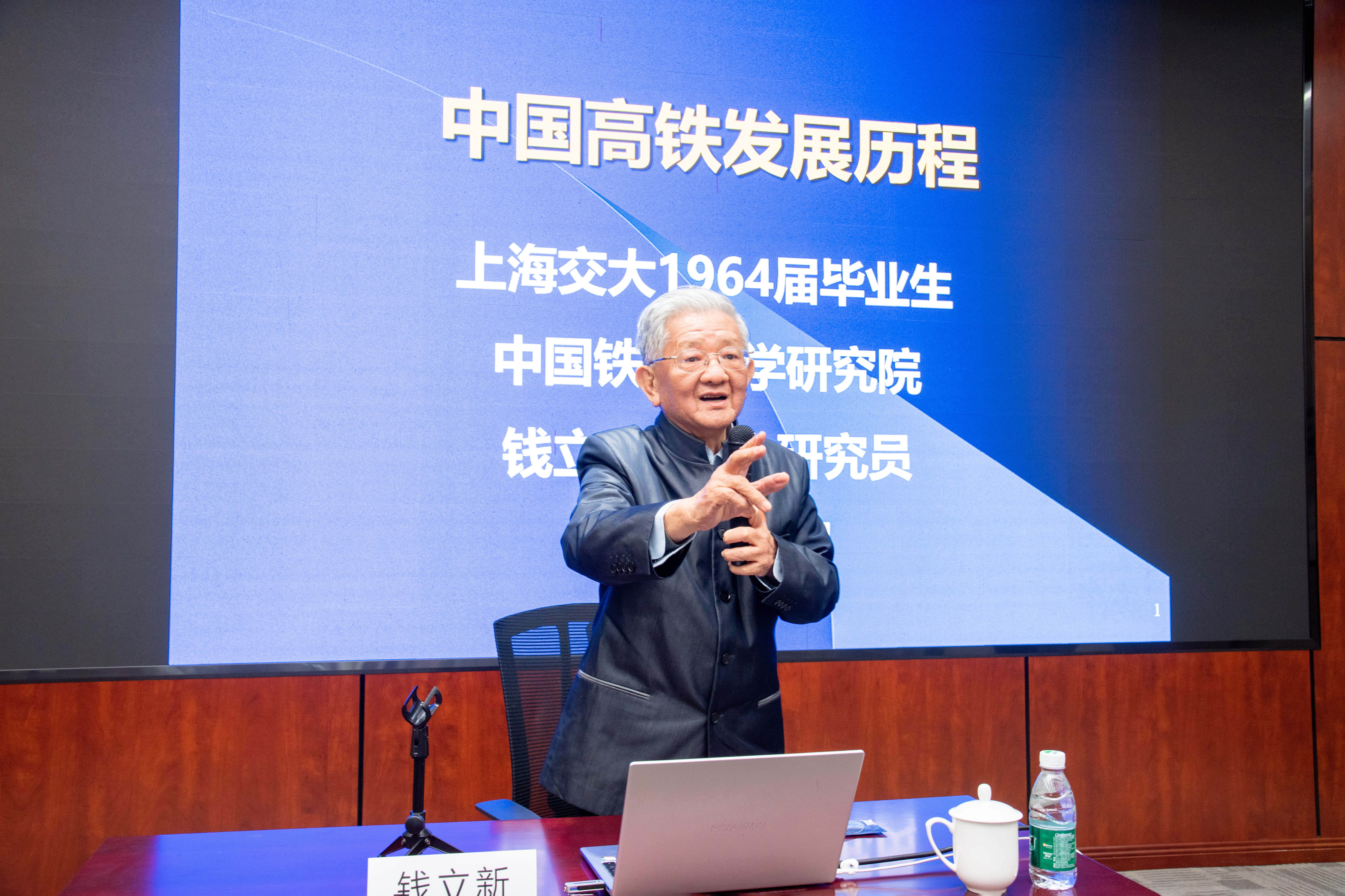 錢立新做“中國(guó)高鐵的發(fā)展歷程”專題報(bào)告,講述了自己在老一輩科學(xué)家茅以升的指導(dǎo)下,設(shè)計(jì)制作我國(guó)第一臺(tái)制動(dòng)動(dòng)力試驗(yàn)臺(tái)的過(guò)程,強(qiáng)調(diào)自己能夠在缺少制造經(jīng)驗(yàn)、缺乏大量有用數(shù)據(jù)的條件下取得成績(jī),與在交大求學(xué)期間勤勉研習(xí)、打下的扎實(shí)基礎(chǔ)密不可分。他鼓勵(lì)大家要把握好在校學(xué)習(xí)的機(jī)會(huì),不斷打磨自身專業(yè)能力。