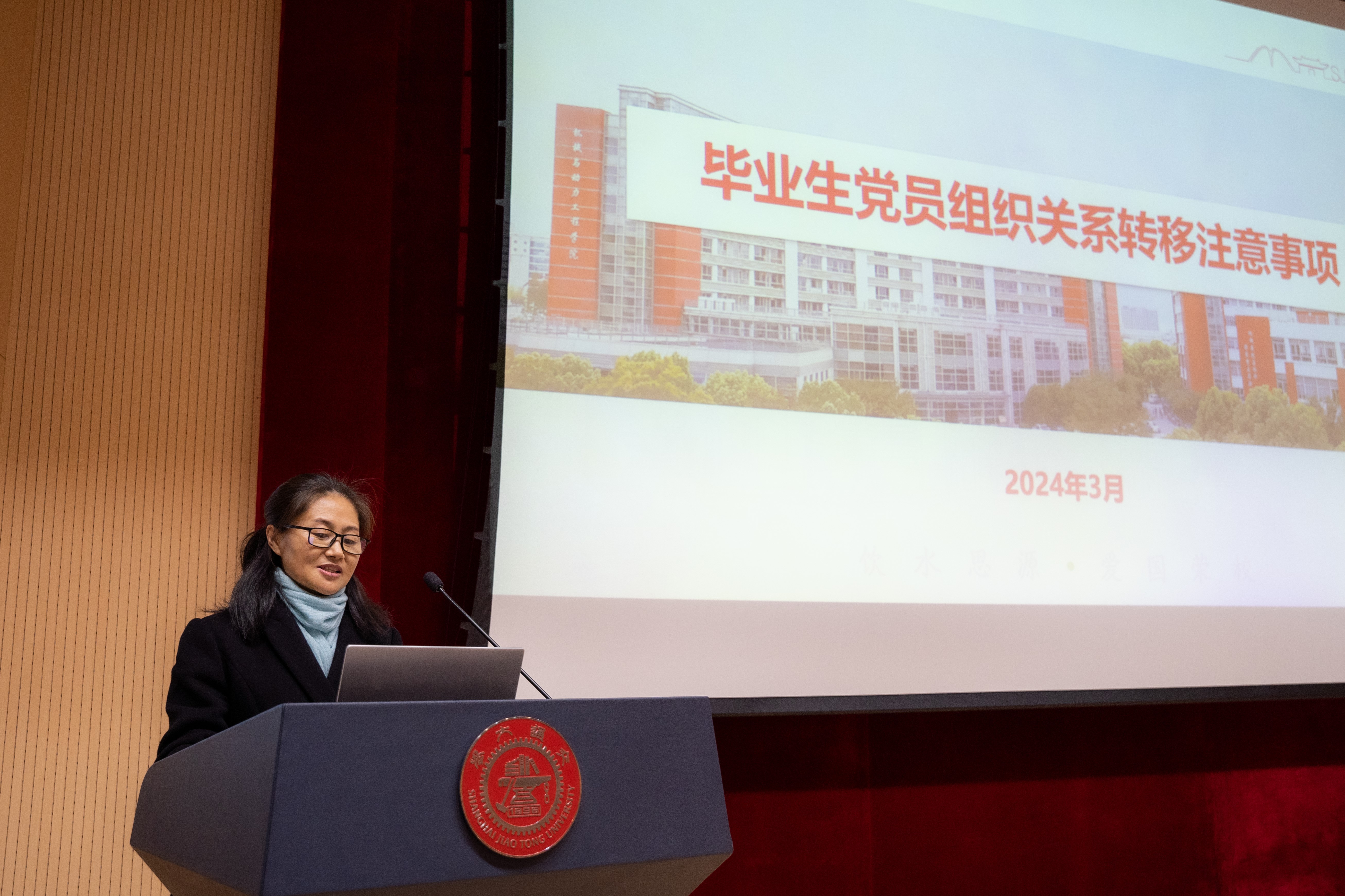 學(xué)院黨委組織員陶曉紅介紹了畢業(yè)生黨員組織關(guān)系轉(zhuǎn)移注意事項(xiàng),勉勵(lì)大家時(shí)刻牢記黨員身份,勇?lián)h員責(zé)任。