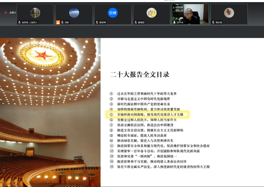 12月30日,航空動(dòng)力研究所黨支部教工黨支部聯(lián)合研究生黨支部,組織開(kāi)展學(xué)習(xí)黨的二十大精神主題黨日活動(dòng),邀請(qǐng)上海交通大學(xué)馬克思主義學(xué)院沈辛成老師做題為“科技為根 人才為源:定位中國(guó)式現(xiàn)代化征程中的卡脖子問(wèn)題”的主題講座,50余名師生黨員線上參加了此次活動(dòng)。活動(dòng)由航空動(dòng)力研究所教工黨支部組織委員沈昕主持。