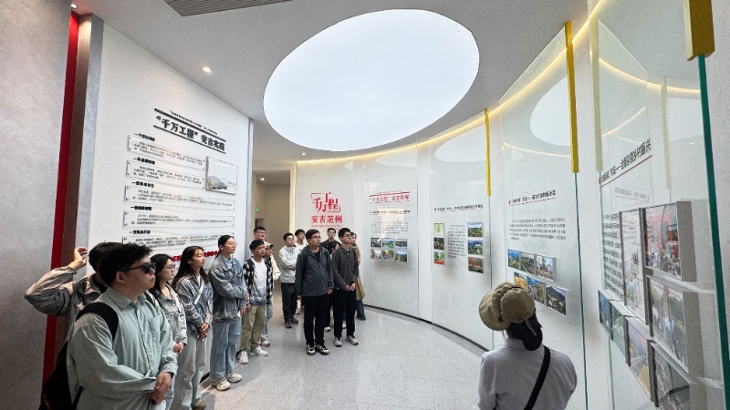 在余村“兩山”景區(qū),學(xué)生黨員骨干們沿著習(xí)總書(shū)記走訪路線,親身感受到了余村從“礦山村”蝶變?yōu)椤吧鷳B(tài)村”的綠色發(fā)展軌跡;在千萬(wàn)工程展覽館中,學(xué)生黨員骨干們?cè)敿?xì)了解到了浙江省“千萬(wàn)工程”構(gòu)建美麗鄉(xiāng)村的實(shí)踐成果,以及余村如何以“千村示范”帶動(dòng)“萬(wàn)村整治”,探索出生態(tài)優(yōu)先、綠色發(fā)展的鄉(xiāng)村振興之路的經(jīng)驗(yàn)啟示。