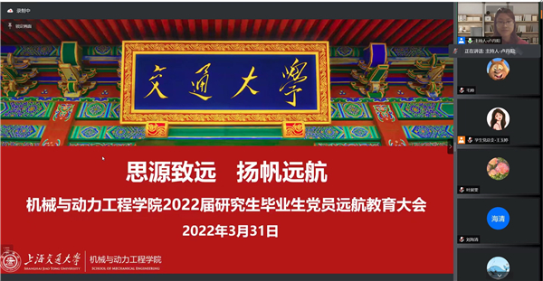 • “思源致遠(yuǎn),揚(yáng)帆遠(yuǎn)航”機(jī)械與動(dòng)力工程學(xué)院舉行2022屆研究生畢業(yè)生黨員遠(yuǎn)航教育大會(huì)[圖]