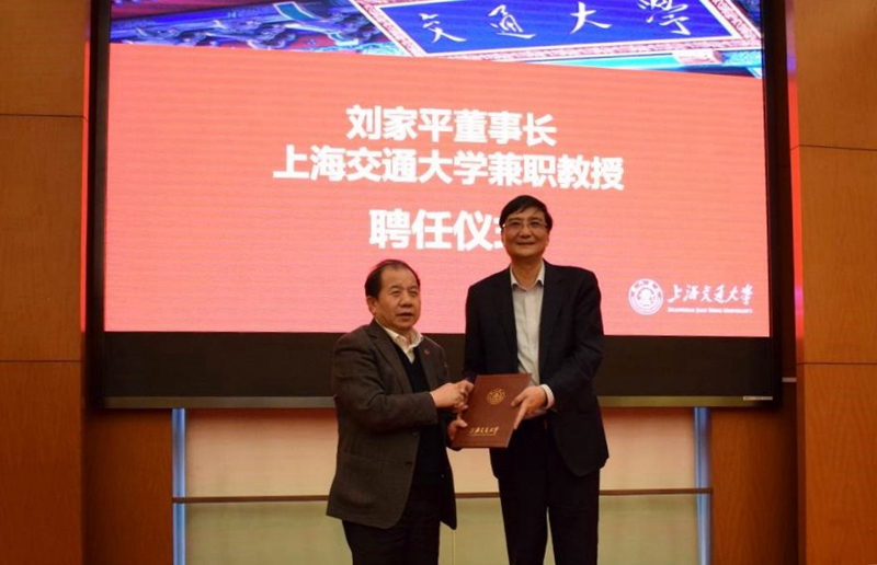 會(huì)議期間舉行了劉家平董事長(zhǎng)上海交通大學(xué)兼職教授聘任儀式。奚立峰介紹了劉家平教授的簡(jiǎn)歷。林忠欽向劉家平頒發(fā)了上海交通大學(xué)兼職教授聘書,并為他佩戴了校徽。