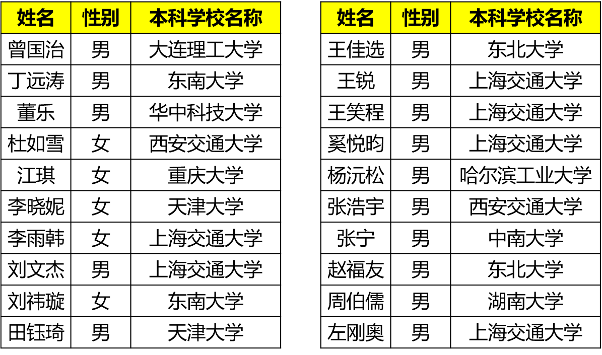 經(jīng)評(píng)審,共有20名同學(xué)獲得2020年優(yōu)秀博士新生獎(jiǎng)學(xué)金,每位學(xué)生在博士期間將獲得五萬(wàn)元獎(jiǎng)學(xué)金。具體名單(以姓名順序)公示如下: