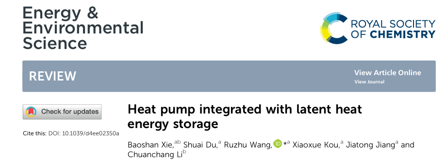 近日,制冷與低溫工程研究所王如竹教授團(tuán)隊(duì)在Energy & Environmental Science上發(fā)表題為“Heat pump integrated with latent heat energy storage”的綜述論文。該論文探討了熱泵-相變儲(chǔ)熱耦合技術(shù)在電網(wǎng)調(diào)峰及靈活匹配用戶熱能需求中的應(yīng)用潛力,全面總結(jié)了熱泵和相變儲(chǔ)熱的耦合意義與雙邊優(yōu)勢(shì),重點(diǎn)歸納了其耦合原理和多樣化的技術(shù)路徑,并介紹了該技術(shù)的最新研究進(jìn)展和面臨的挑戰(zhàn)。論文的第一作者為制冷與低溫工程研究所博士后謝寶珊,通訊作者為王如竹教授。