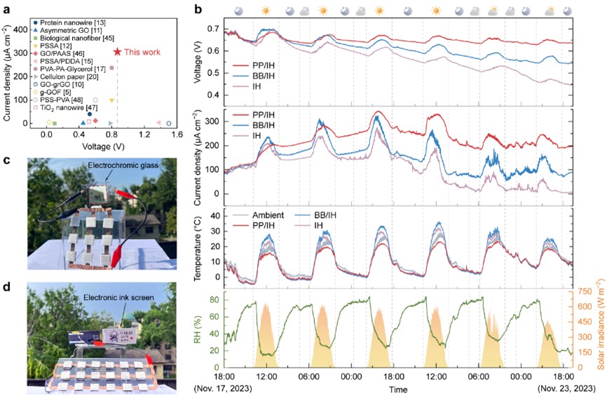 濕度發(fā)電器件輸出性能和戶外輸出穩(wěn)定性