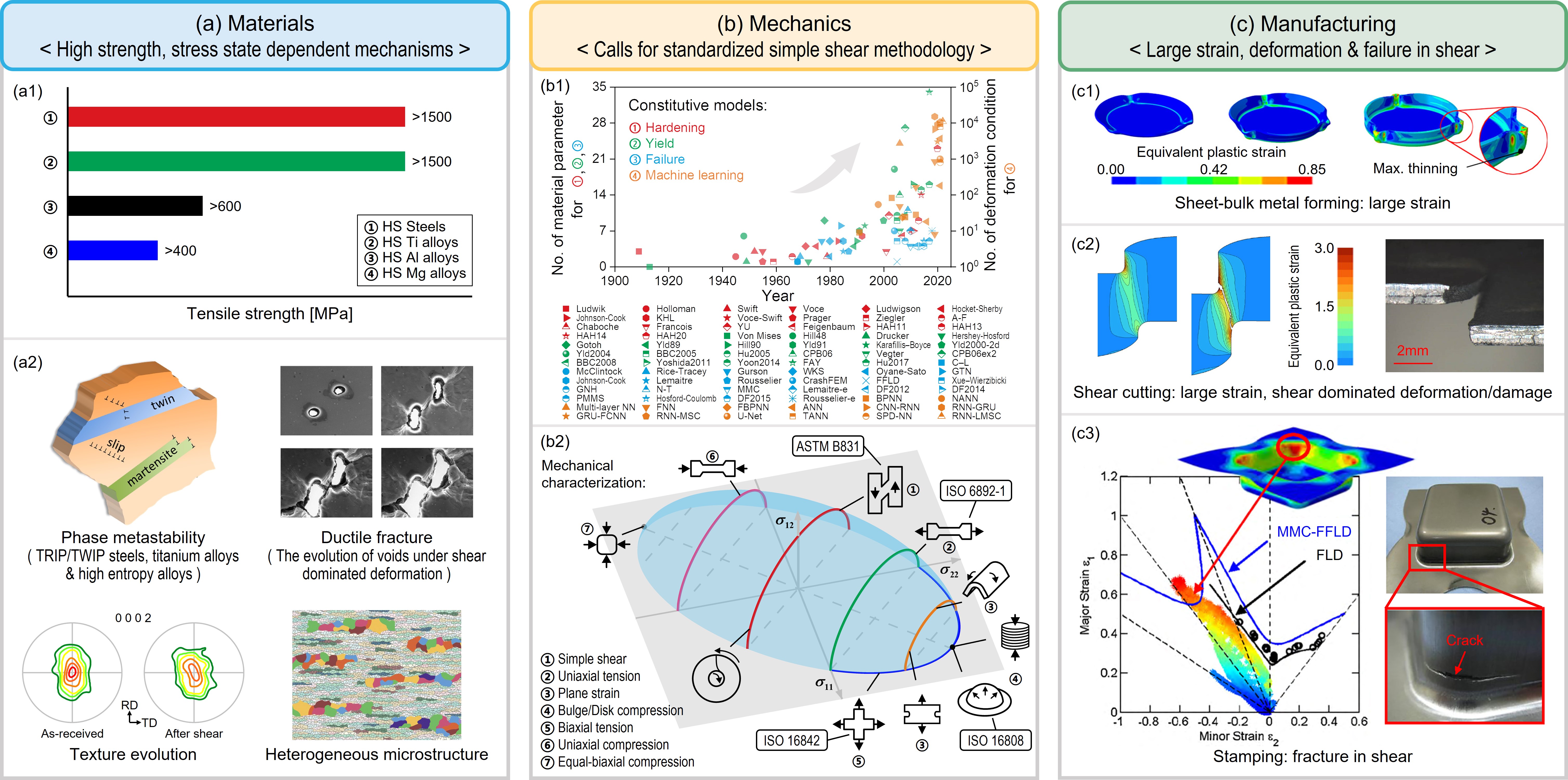 近日,上海交通大學(xué)薄板結(jié)構(gòu)制造研究所林忠欽院士課題組在國際材料領(lǐng)域期刊Progress in Materials Science上發(fā)表了題為“Simple shear methodology for local structure–property relationships of sheet metals: State-of-the-art and open issues”的綜述論文。論文總結(jié)了金屬薄板簡單剪切測(cè)試方法的理論基礎(chǔ)、實(shí)驗(yàn)技術(shù)以及其在揭示材料結(jié)構(gòu)-性能關(guān)系中的應(yīng)用現(xiàn)狀,進(jìn)一步指出了目前存在問題和潛在解決方案。薄板結(jié)構(gòu)制造研究所何霽副教授和李淑慧教授為論文共同通訊作者,博士生韓國豐和何霽副教授為論文共同第一作者。