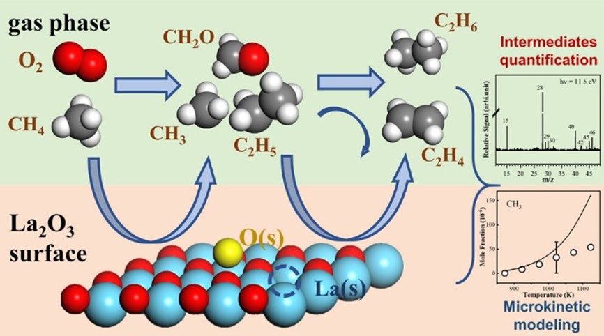 近日,機(jī)械與動(dòng)力工程學(xué)院航空動(dòng)力研究所苑文浩副教授在甲烷催化氧化偶聯(lián)(OCM)微觀反應(yīng)動(dòng)力學(xué)研究方面取得新進(jìn)展,在催化領(lǐng)域期刊ACS Catalysis上發(fā)表了題為Elucidating the Mechanism for Oxidative Coupling of Methane Catalyzed by La2O3: Experimental and Microkinetic Modeling Studies的研究成果,博士研究生熊再立為論文第一作者,苑文浩副教授和齊飛教授為共同通訊作者。