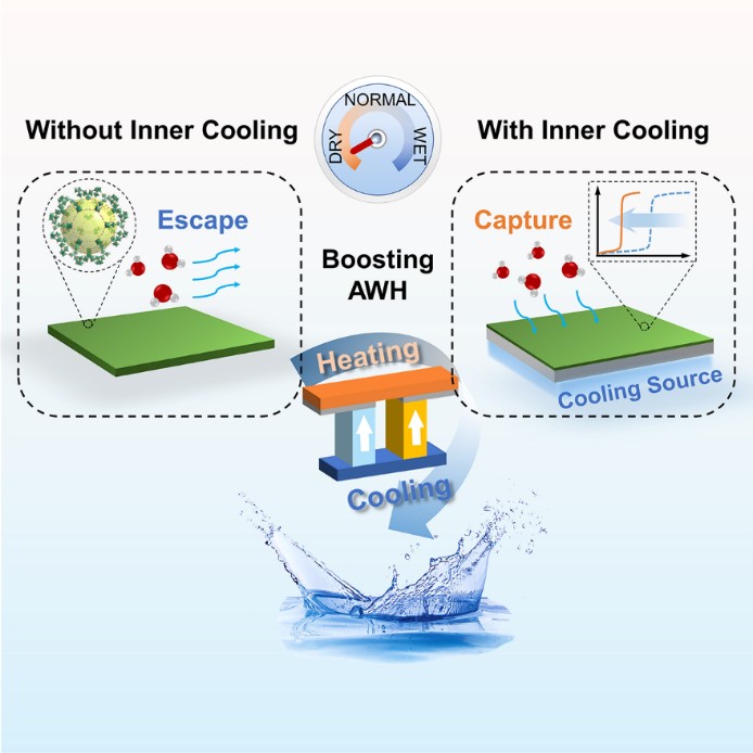 近日,制冷與低溫工程研究所ITEWA創(chuàng)新團(tuán)隊(duì)在Cell Press旗下Cell Reports Physical Science發(fā)表了題為“A regulation strategy of sorbent stepwise position for boosting atmospheric water harvesting in arid area”的研究論文,提出在吸附側(cè)構(gòu)建冷源調(diào)控介孔MOF吸濕階躍區(qū)間的新策略,可拓寬高吸濕量介孔材料在空氣取水應(yīng)用中的適用范圍。論文第一作者是博士生馮耀輝和葛天舒教授,通訊作者是葛天舒教授和王如竹教授。