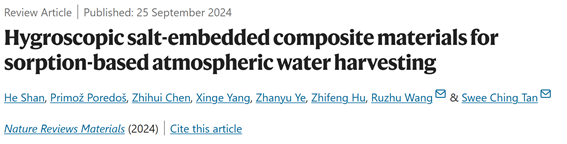 王如竹ITEWA團(tuán)隊(duì)提出吸附式空氣取水材料設(shè)計(jì)的熱力學(xué)理論框架
